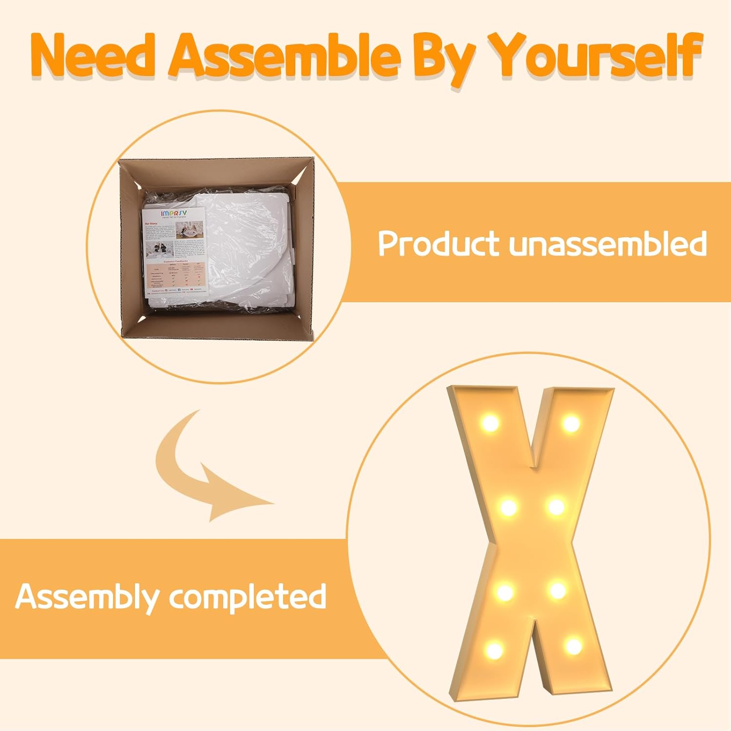 - Assembly Required: Our large marquee letters is made from foam board and easy to assemble with our splicing mode. Just follow the numbered instructions to align and insert the bottom plate, and reinforce it with a hot glue gun. Then, you're done!