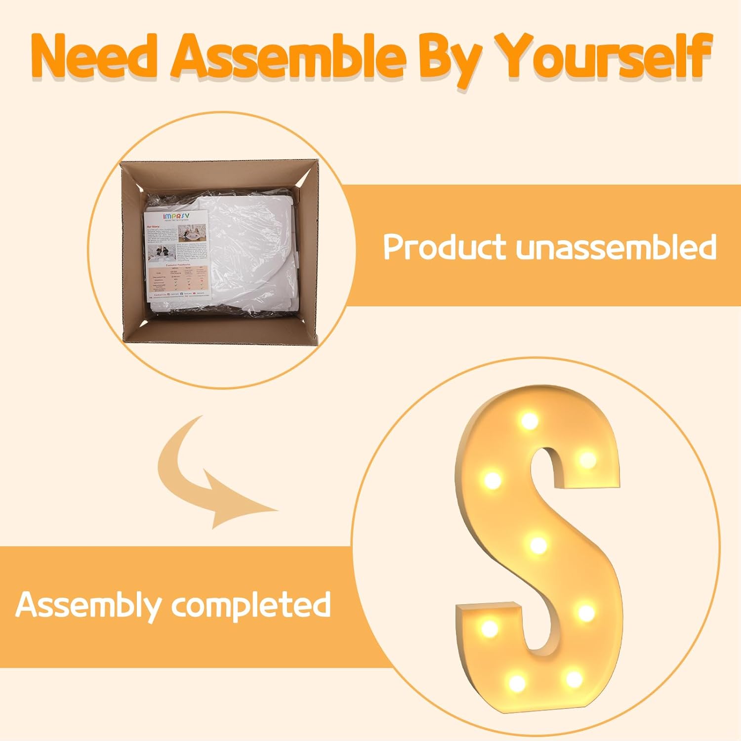 - Assembly Required: Our large marquee letters is made from foam board and easy to assemble with our splicing mode. Just follow the numbered instructions to align and insert the bottom plate, and reinforce it with a hot glue gun. Then, you're done!