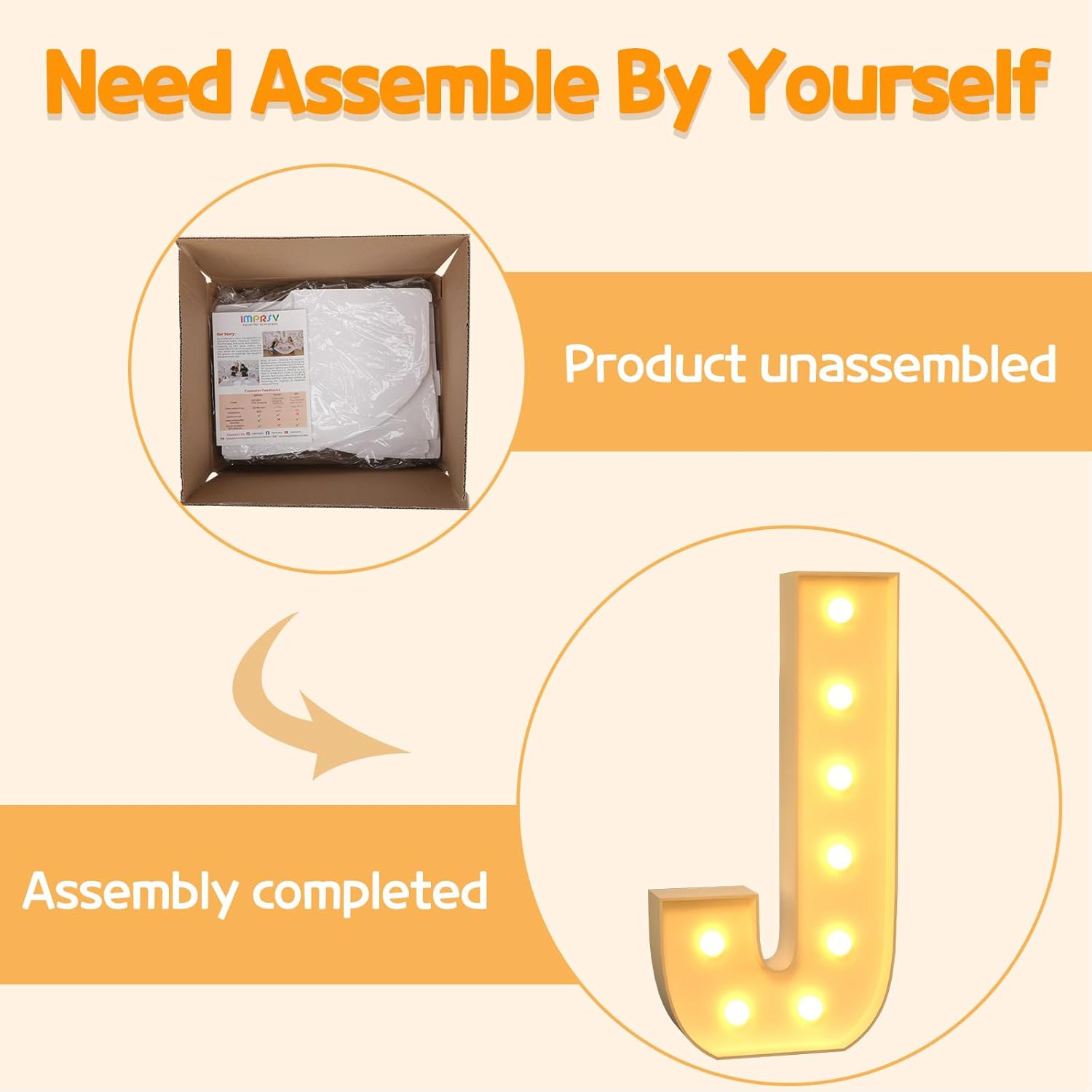 - Assembly Required: Our large marquee letters is made from foam board and easy to assemble with our splicing mode. Just follow the numbered instructions to align and insert the bottom plate, and reinforce it with a hot glue gun. Then, you're done!