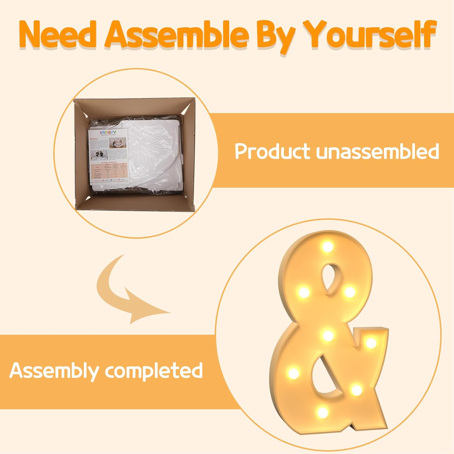 - Assembly Required: Our large marquee letters is made from foam board and easy to assemble with our splicing mode. Just follow the numbered instructions to align and insert the bottom plate, and reinforce it with a hot glue gun. Then, you're done!