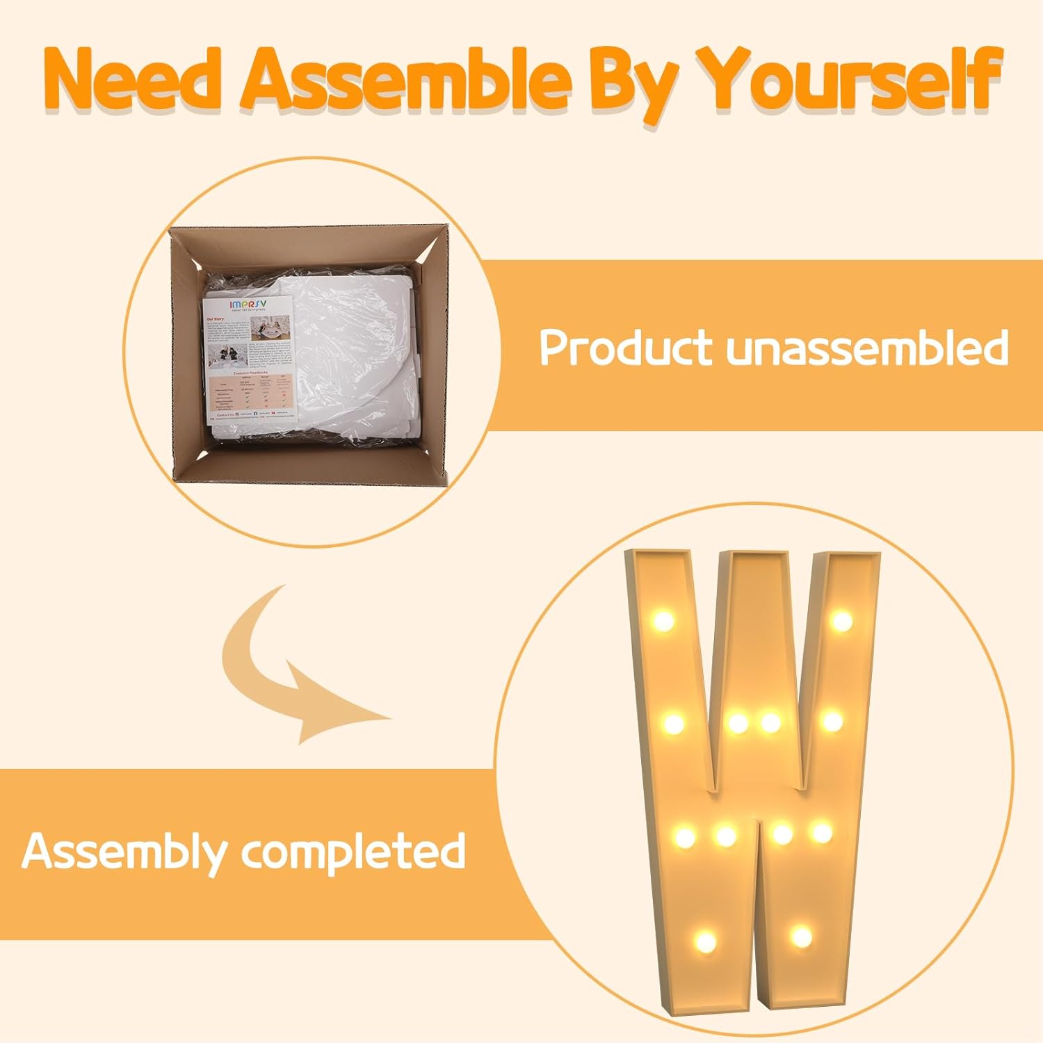 - Assembly Required: Our large marquee letters is made from foam board and easy to assemble with our splicing mode. Just follow the numbered instructions to align and insert the bottom plate, and reinforce it with a hot glue gun. Then, you're done!