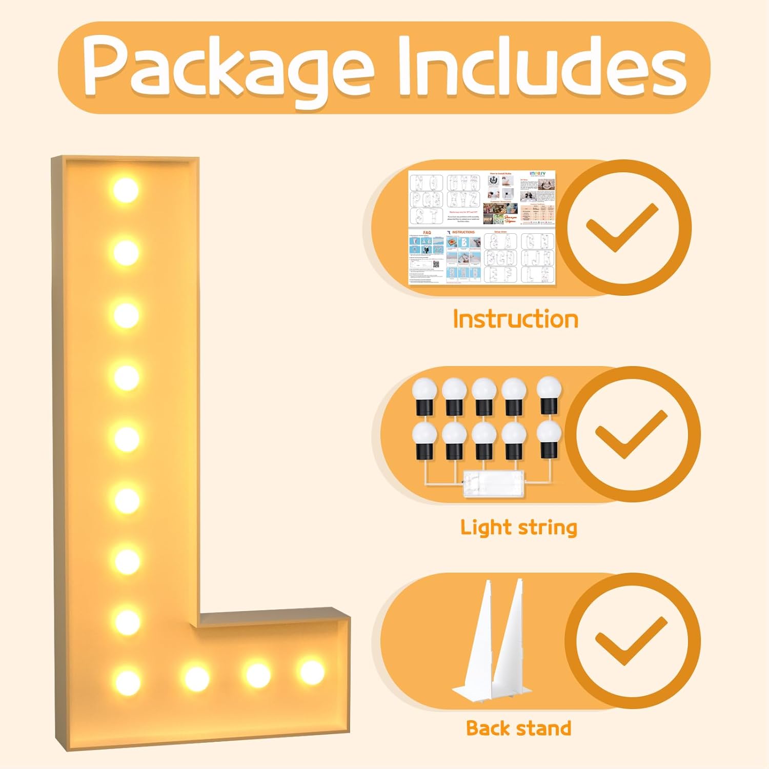 - Equipped with Light String: Marquee light up letters include matching light strings, so you can say goodbye to the annoyances of incompatible light strings and enjoy an effortless setup.