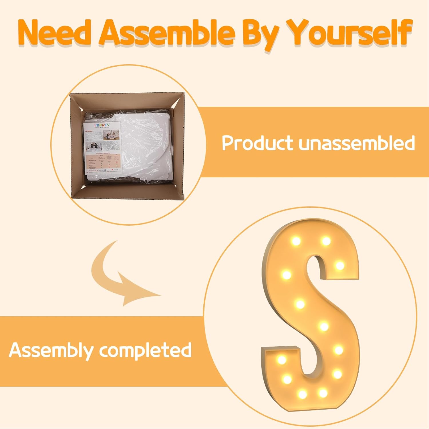 - Assembly Required: Our large marquee letters is made from foam board and easy to assemble with our splicing mode. Just follow the numbered instructions to align and insert the bottom plate, and reinforce it with a hot glue gun. Then, you're done!