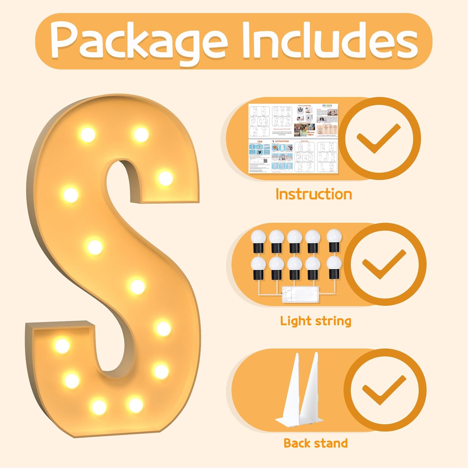 Marquee Letters 4 Feet Tall Large Light Up Letters S Wedding Mr and Mrs Sign Marry Me Engagement Party Decor Yellow Light Birthday Decorations Balloon Arch Kit Foam Sign S