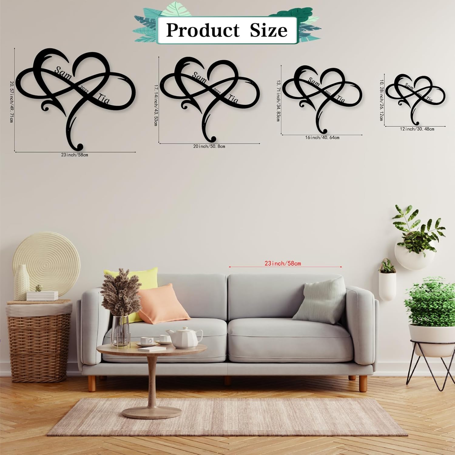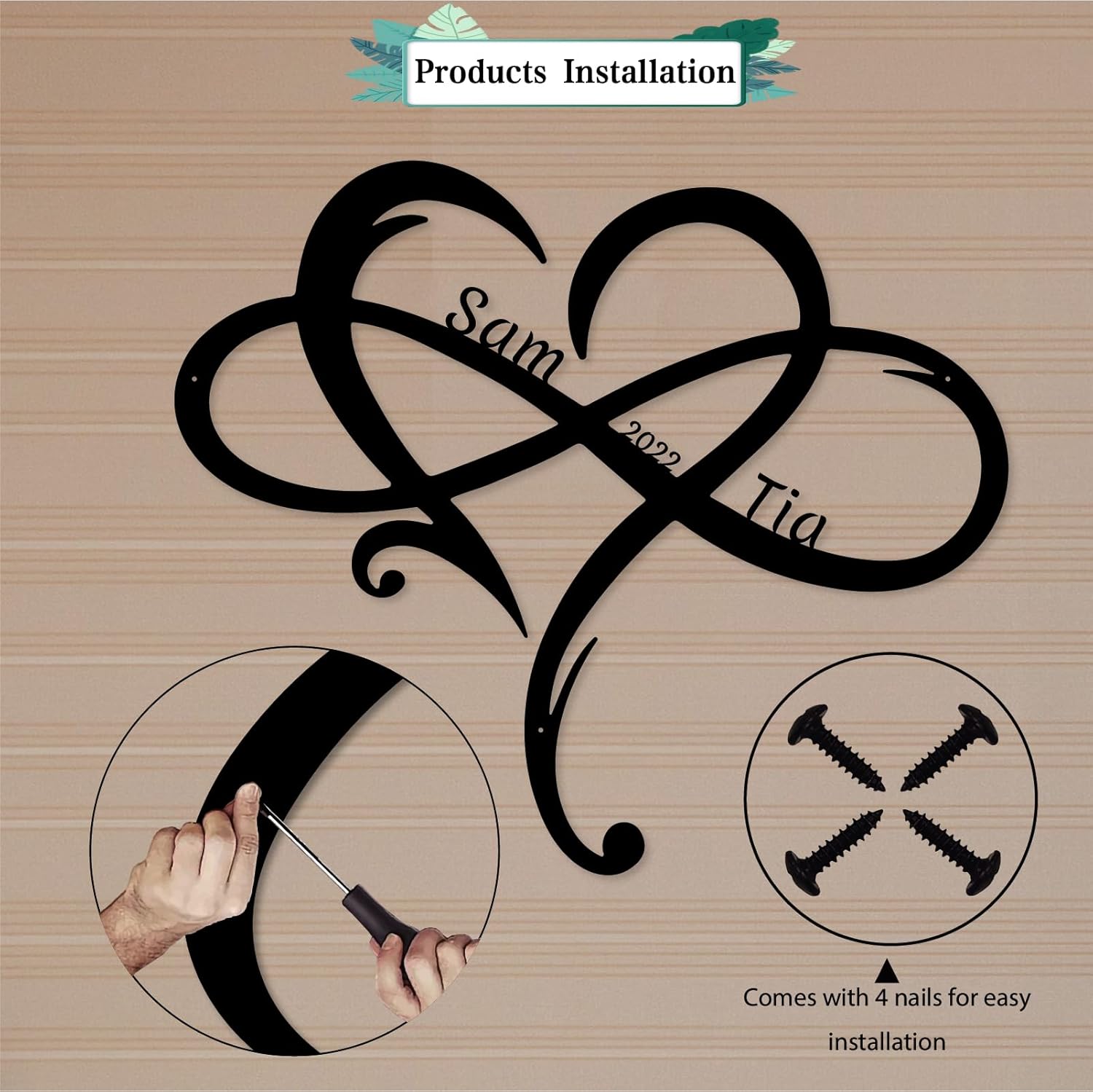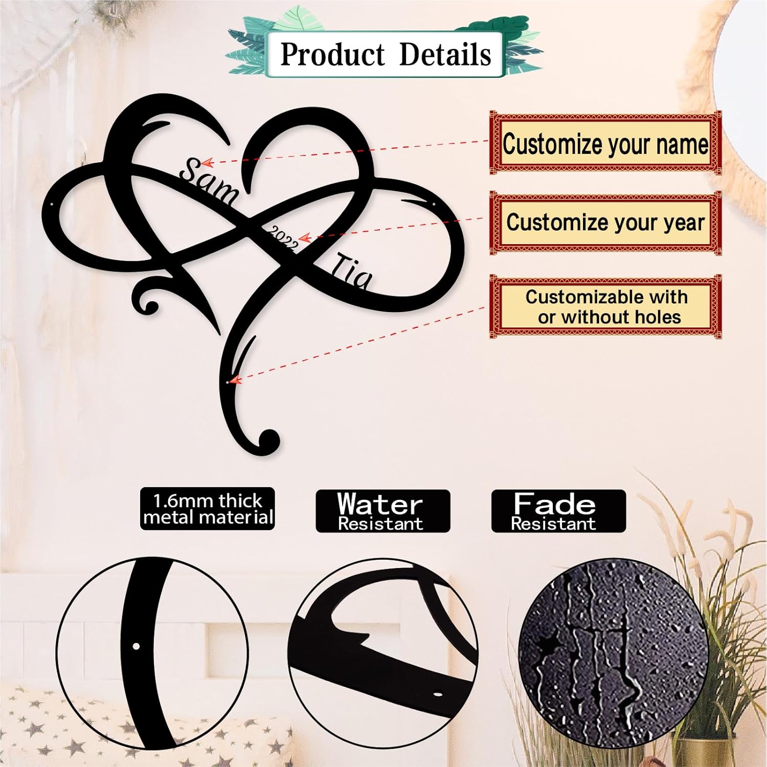 - Personalized Heart Design: Celebrate love with a customizable metal sign featuring intertwined names and a heart-shaped motif, perfect for showcasing special relationships.