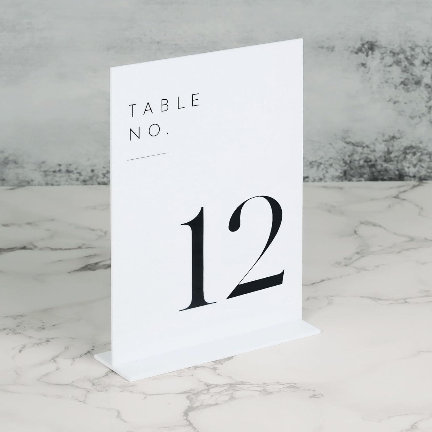 - PREMIUM QUALITY: These white acrylic table numbers with holders are made from high quality white acrylic panels and then printed with white letters in a simple arch design that won't go out of style and will last a long time.