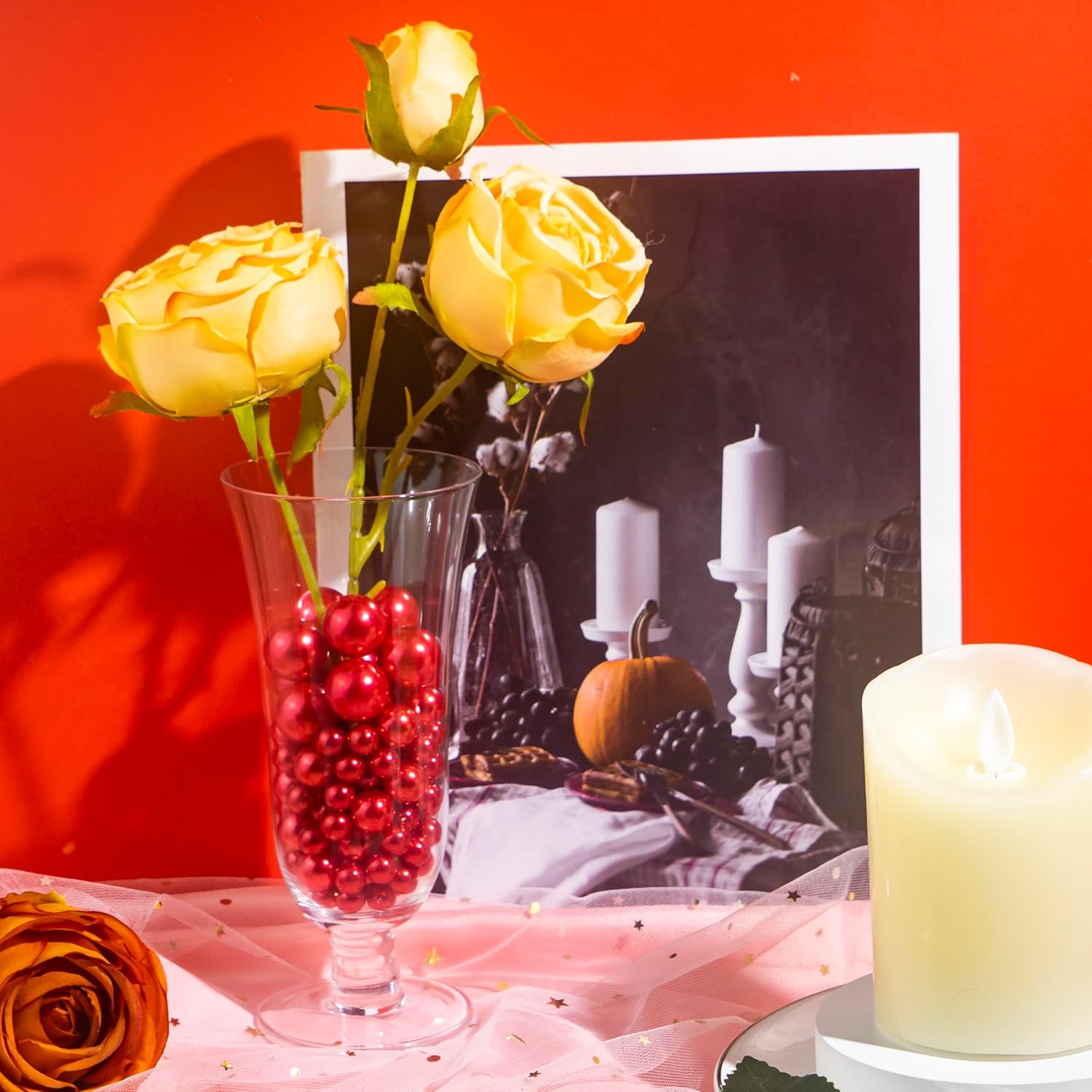 150Pcs Red Polished No Hole Faux Pearl Beads for Vase Filling Decorations, Plastic Pearls Vase Fillers, Table Scatters, Wedding Centerpiece, Home Decor, 8/14/20 mm