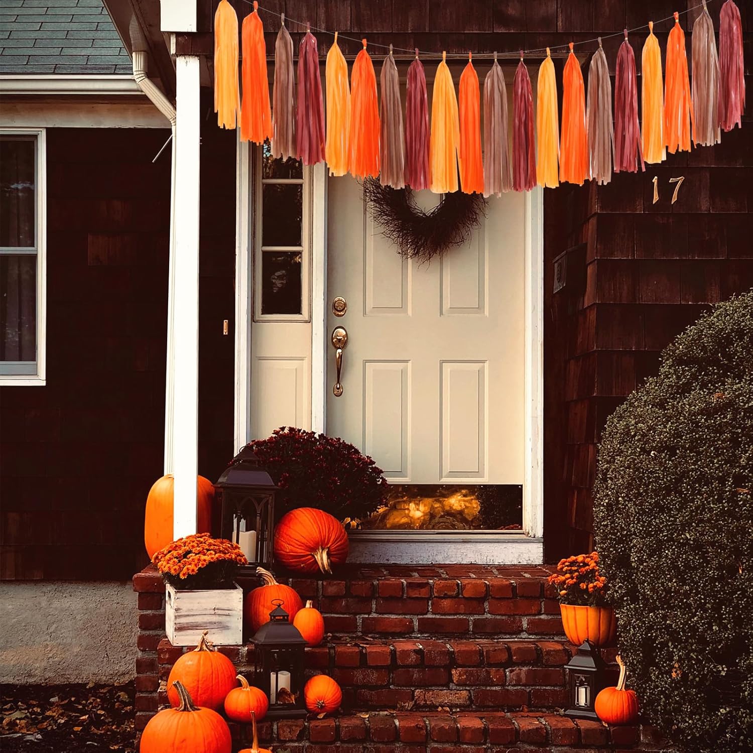 - 【Garland includes】20tassels,5pcs brown, 5pcs burgundy , 5pcs orange,5pcs light orange tassel garland. Each tassel is about 14" long after assembled. And each garland comes with a 10ft long free String for hanging these tassels.