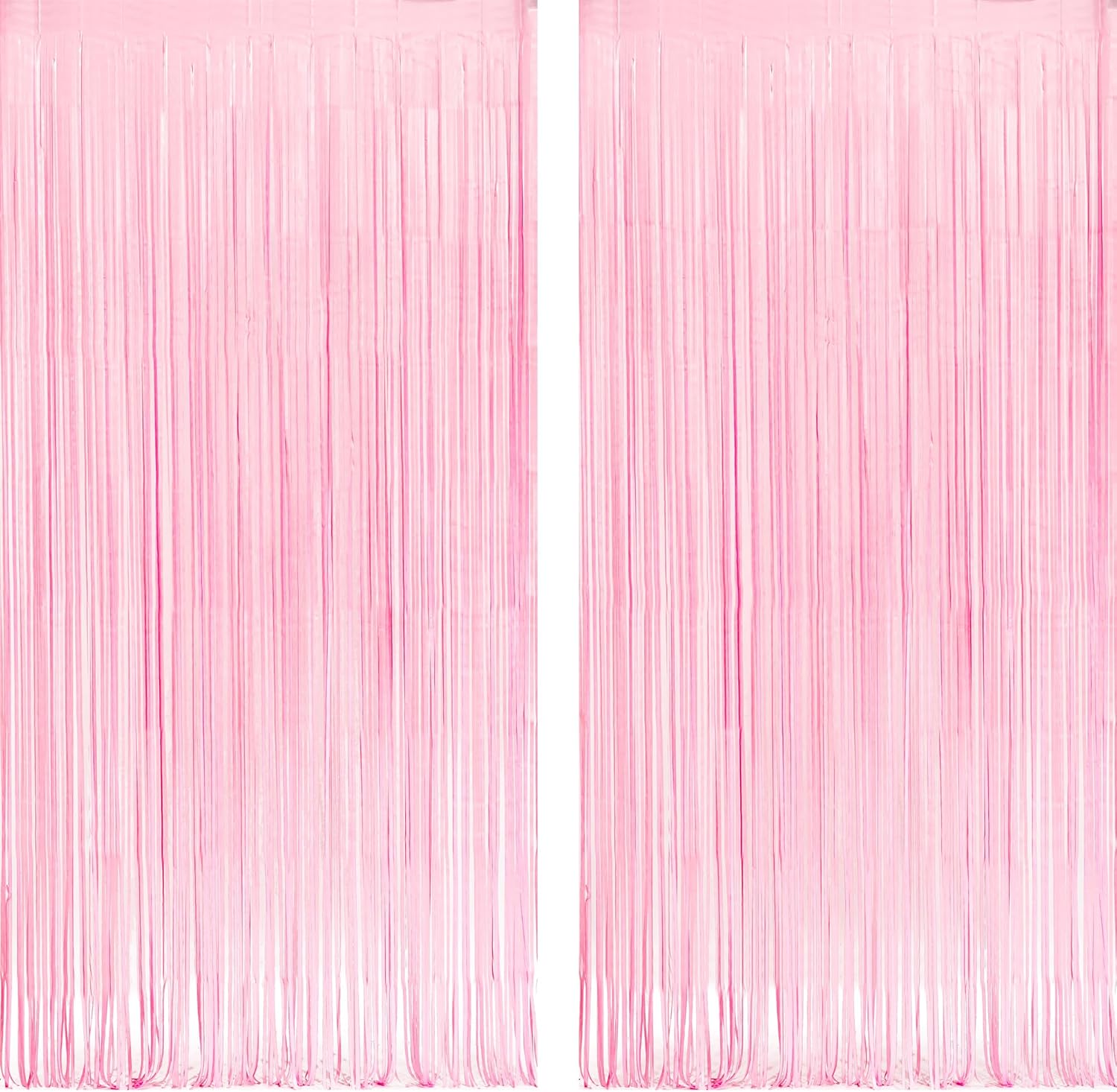 Pastel Pink Party Backdrop Decoration - GREATRIL Baby Pink Foil Fringe Streamers for Baby/Boo Day/Valentines/Cowgirl/Sweet/Cloud/Unicorn/Princess/Bow Themed - 3.2ft X 8.2ft - 2 Packs