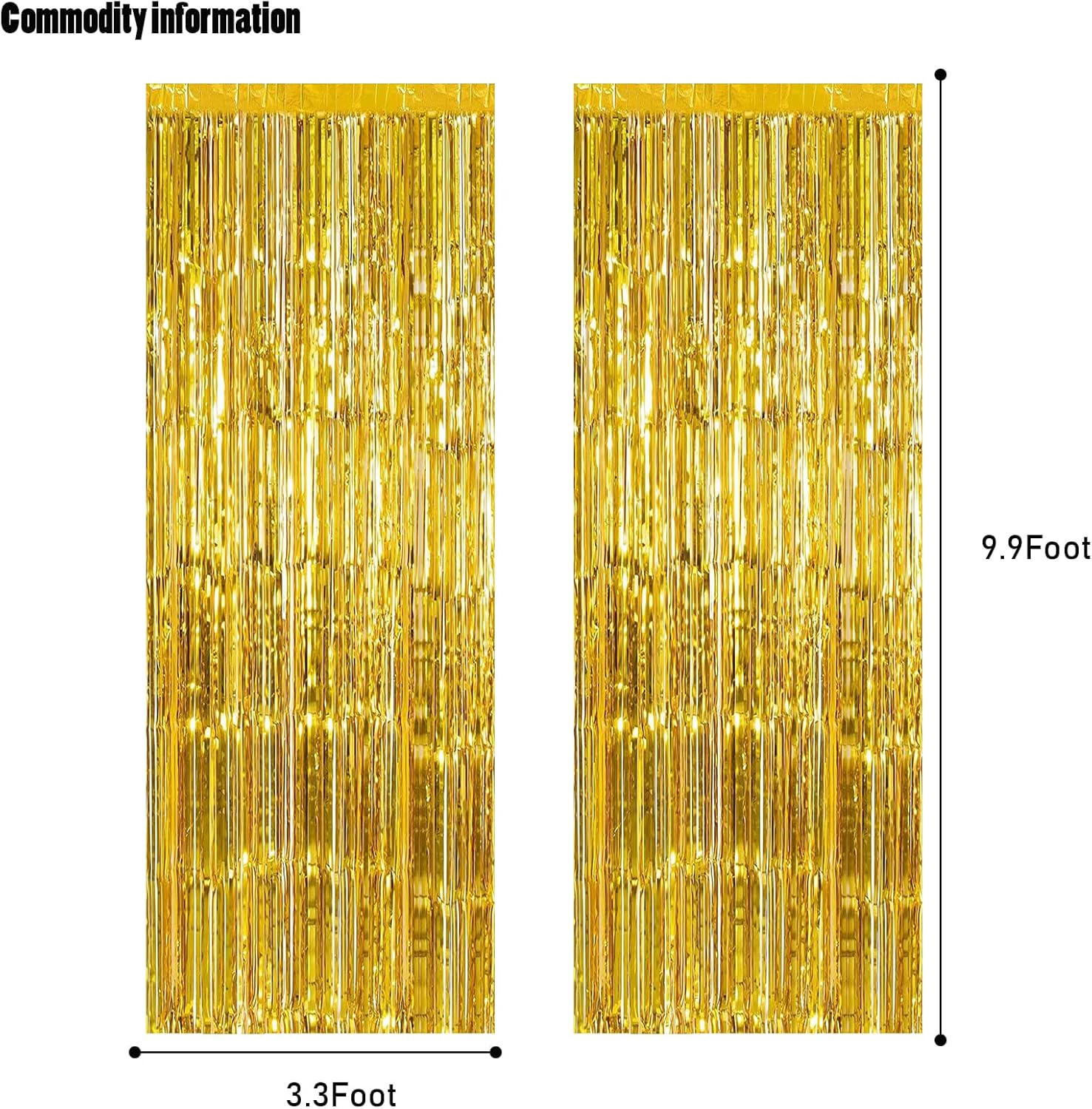 - 🎉PACKAGE INCLUDED : 2 pack of gold foil fringe curtains, the size of each tinsel curtain is 3.3 ft x 8.2 ft, enough length for hanging on a door or covering a wall fully, suitable for any parties.