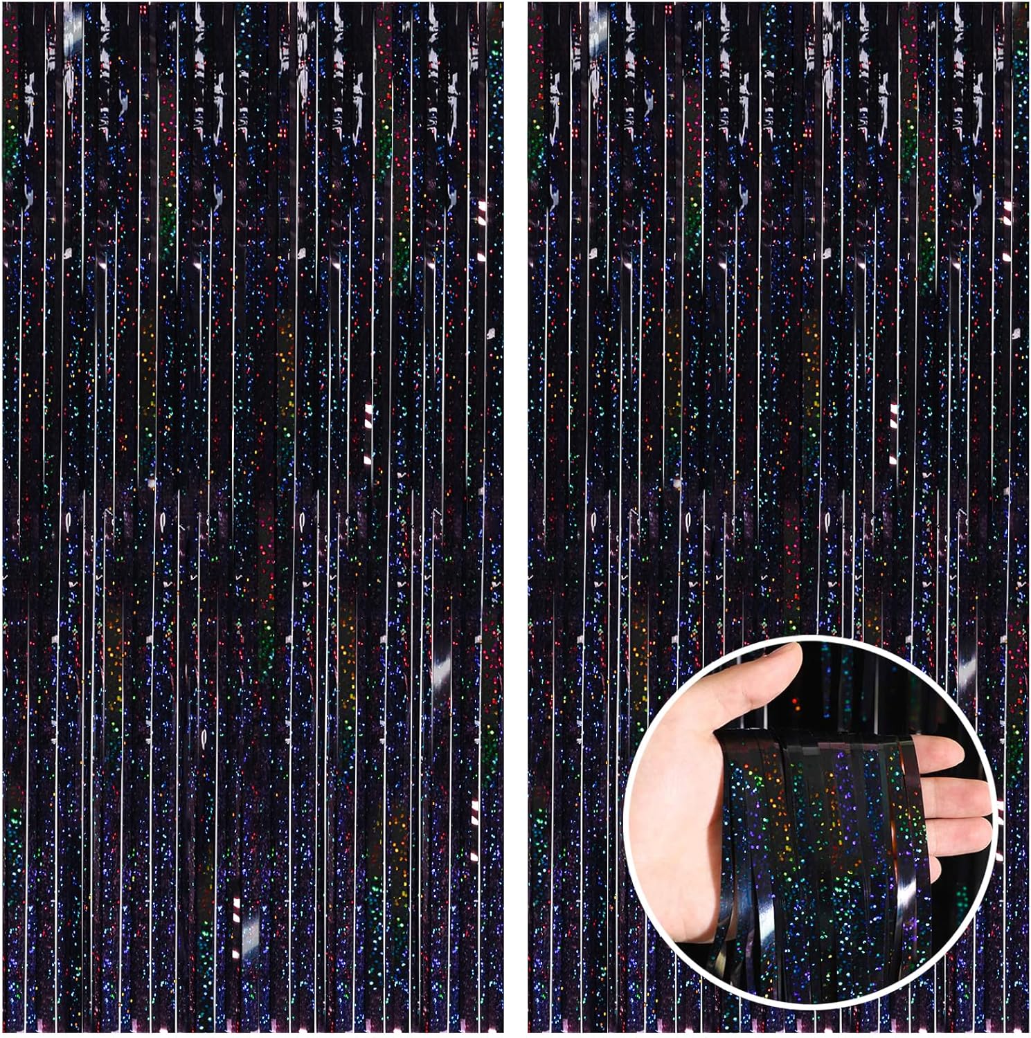 - 🎉PACKAGE INCLUDED : 2 pack of black foil fringe curtains, the size of each tinsel curtain is 3.3 ft x 8.2 ft, enough length for hanging on a door or covering a wall fully, suitable for any parties.