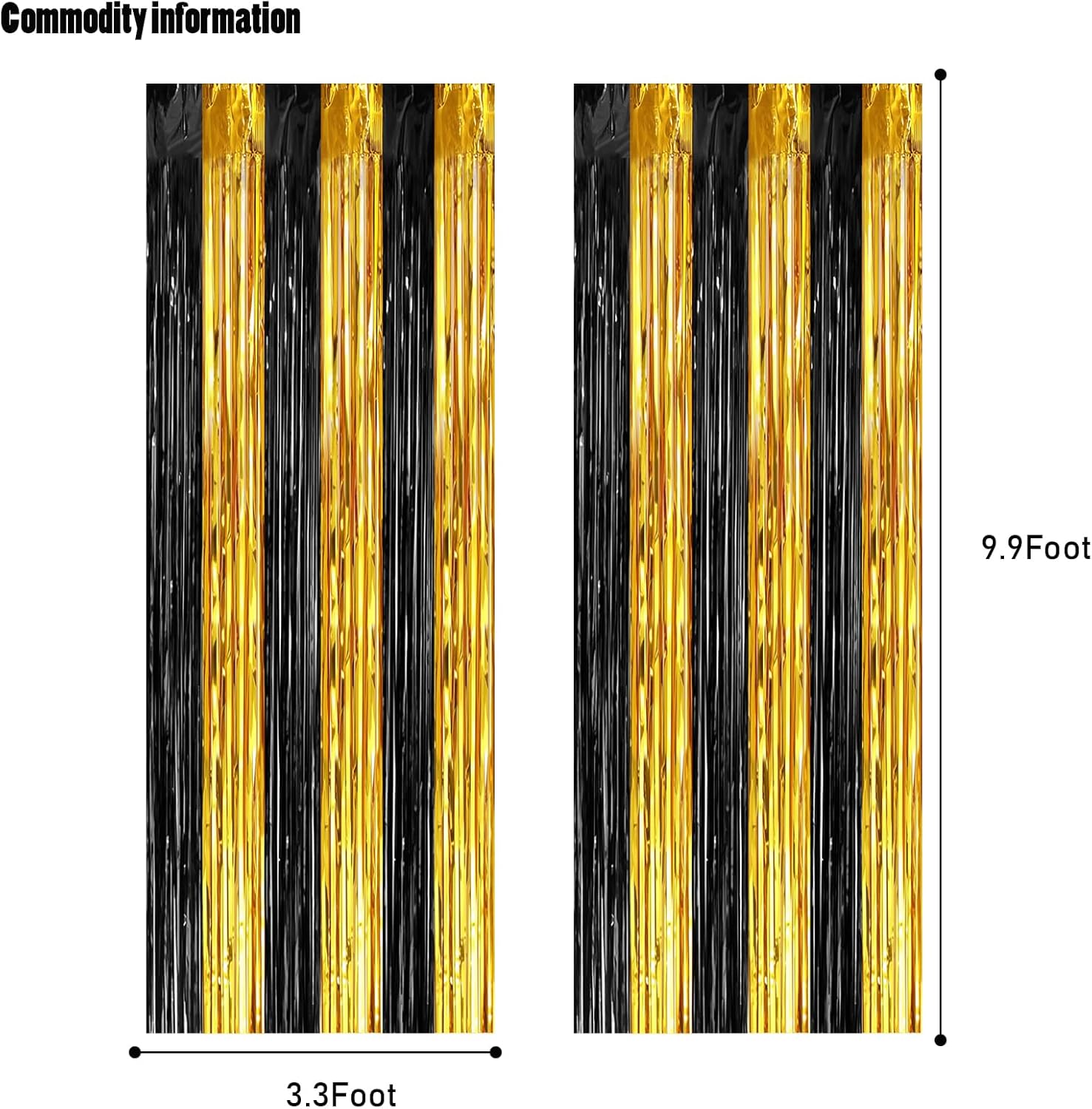 - 🎉PACKAGE INCLUDED : 2 pack of black and gold foil fringe curtains, the size of each tinsel curtain is 3.3 ft x 8.2 ft, enough length for hanging on a door or covering a wall fully, suitable for any parties.