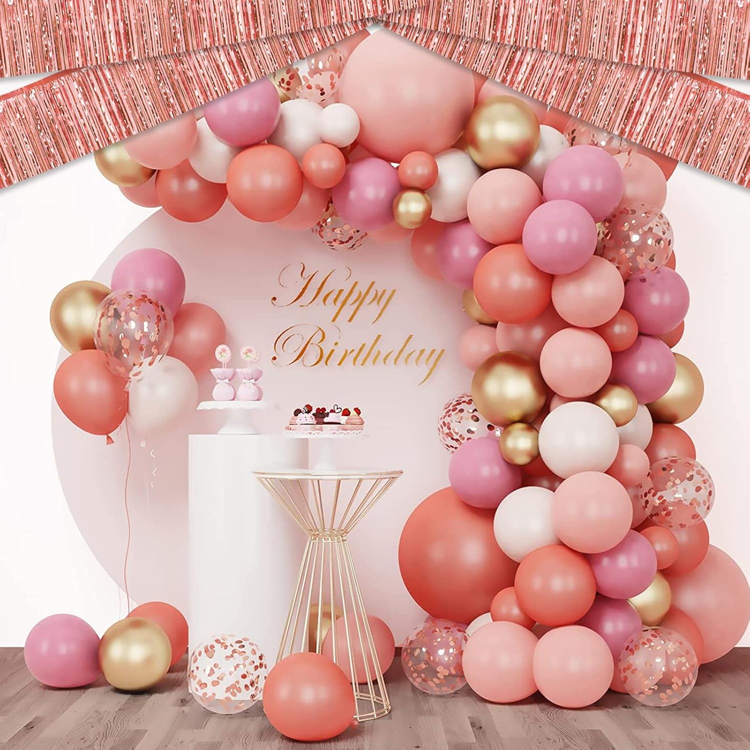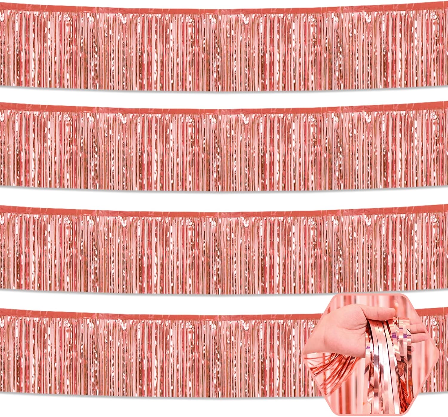 4 Pack 10 Feet Rose Gold Foil Fringe Garland Metallic Tinsel Streamers Banner Wall Hanging Curtain Backdrop for Parade Floats, Wedding, Graduate, Mother's Day, Birthday Party Decoration