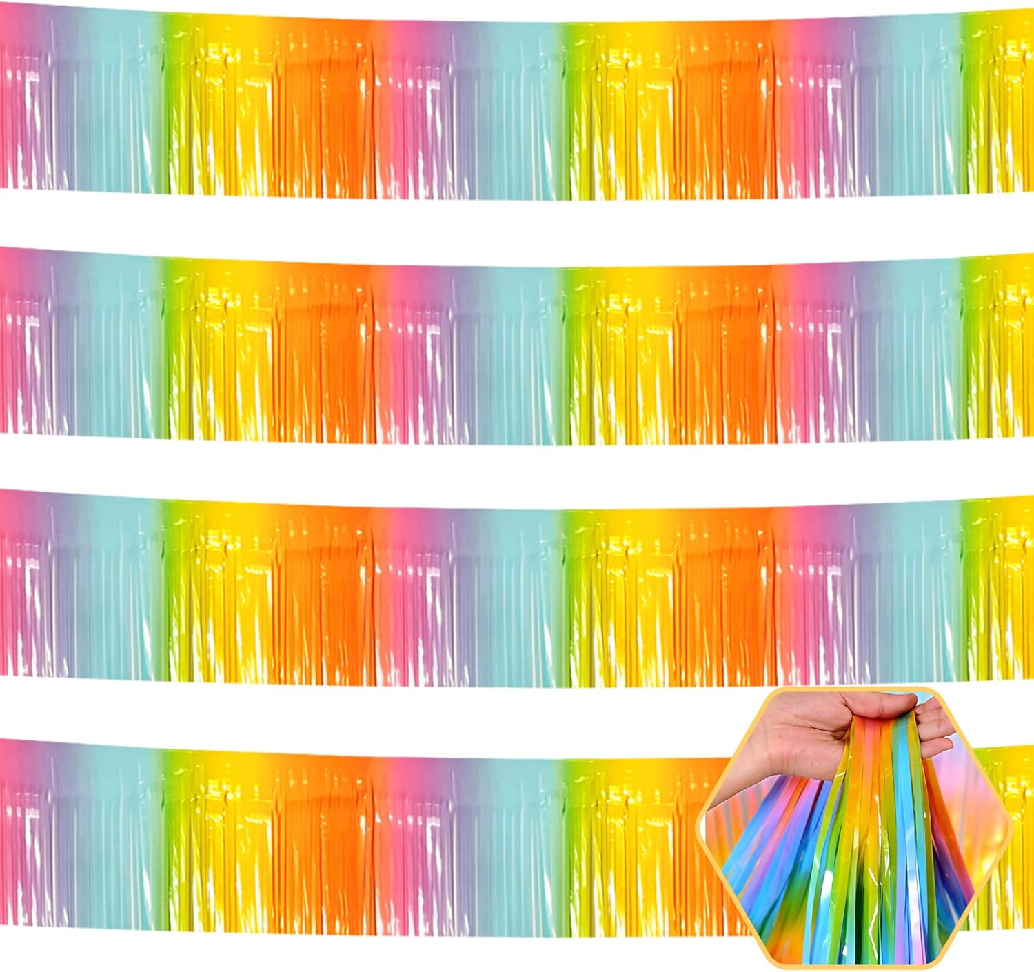 4 Pack 10 Feet Rainbow Foil Fringe Garland Metallic Tinsel Streamers Banner Wall Hanging Curtain Backdrop for Parade Floats, Wedding, Graduate, Mother's Day, Birthday Party Decoration
