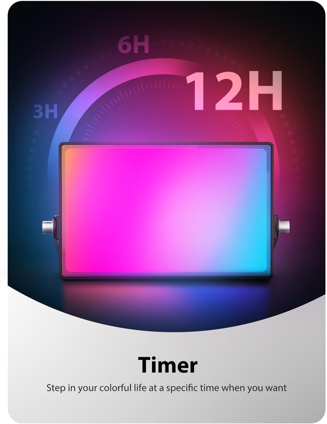 - Timing & Memory Function: Timing function allows you to set the working time (3 / 6 / 12 h), this uplights will automatically turn off when setting time is up. Memory Function makes these color-changing spotlights stay at your last set of colors and light display mode when turning on again. No need to reset it