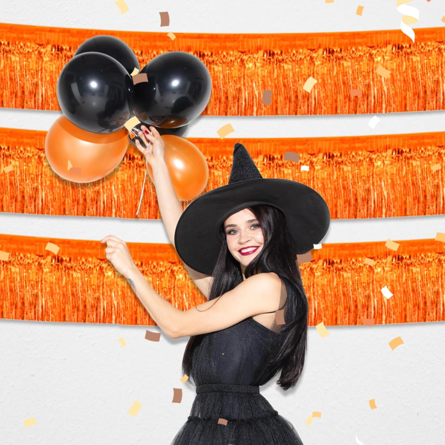 4 Pack 10 Feet Orange Foil Fringe Garland Metallic Tinsel Streamers Banner Wall Hanging Curtain Backdrop for Parade Floats, Wedding, Graduate, Mother's Day, Birthday Party Decoration