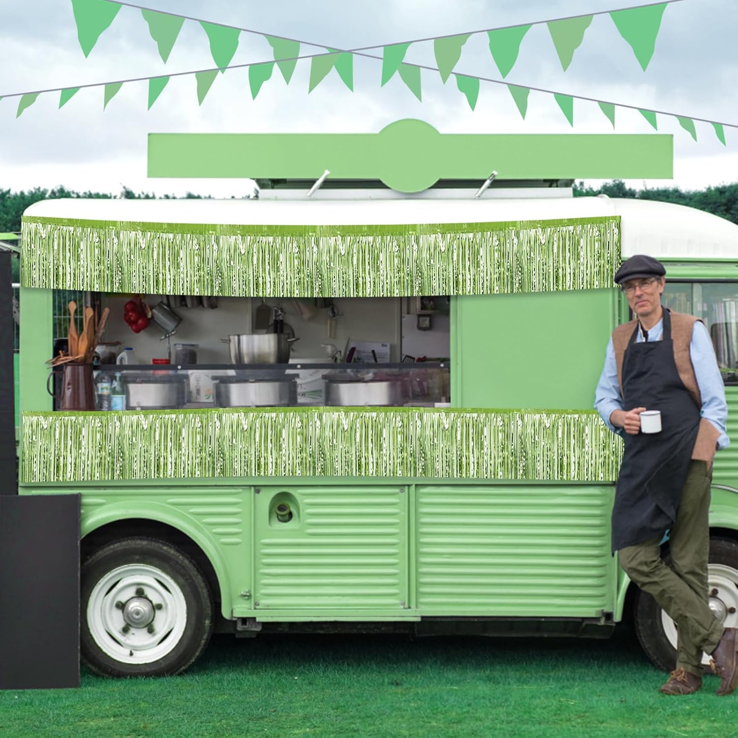 6 Pack 10 Feet Light Green Foil Fringe Garland Metallic Tinsel Streamers Banner Wall Hanging Curtain Backdrop for Parade Floats, Birthday, Graduate, Mother's Day, Wedding Party Decoration