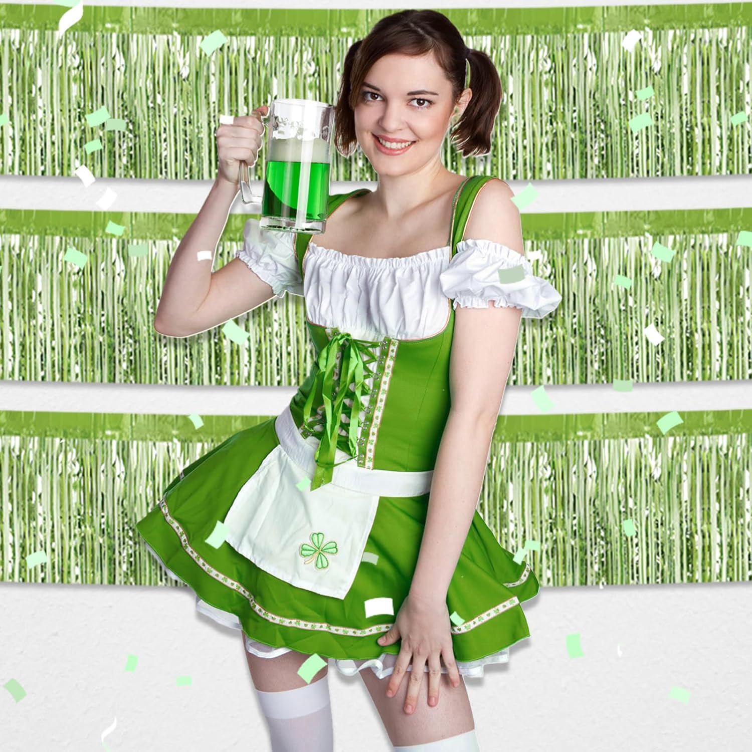 4 Pack 10 Feet Light Green Foil Fringe Garland Metallic Tinsel Streamers Banner Wall Hanging Curtain Backdrop for Parade Floats, Wedding, Graduate, Mother's Day, Birthday Party Decoration