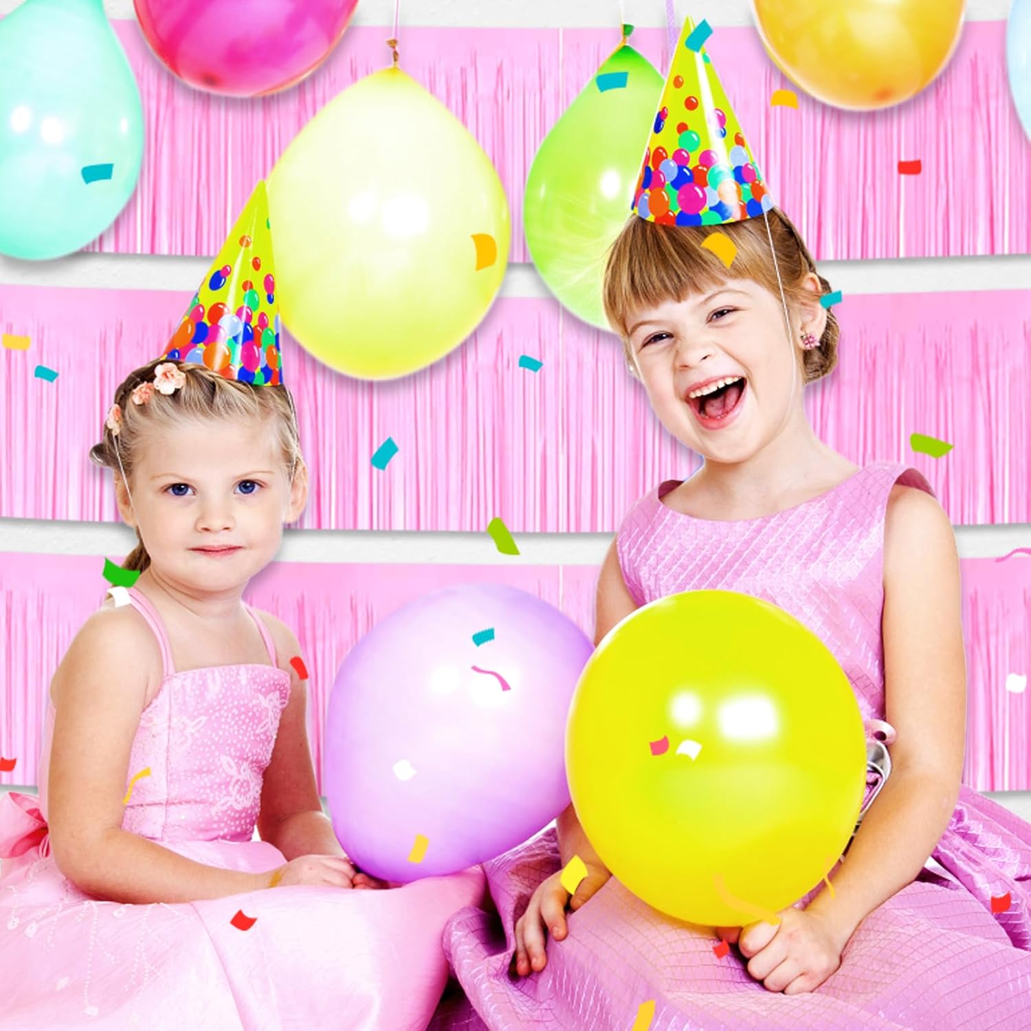 6 Pack 10 Feet Macaron Pink Foil Fringe Garland Metallic Tinsel Streamers Banner Wall Hanging Curtain Backdrop for Parade Floats, Birthday, Graduate, Mother's Day, Wedding Party Decoration