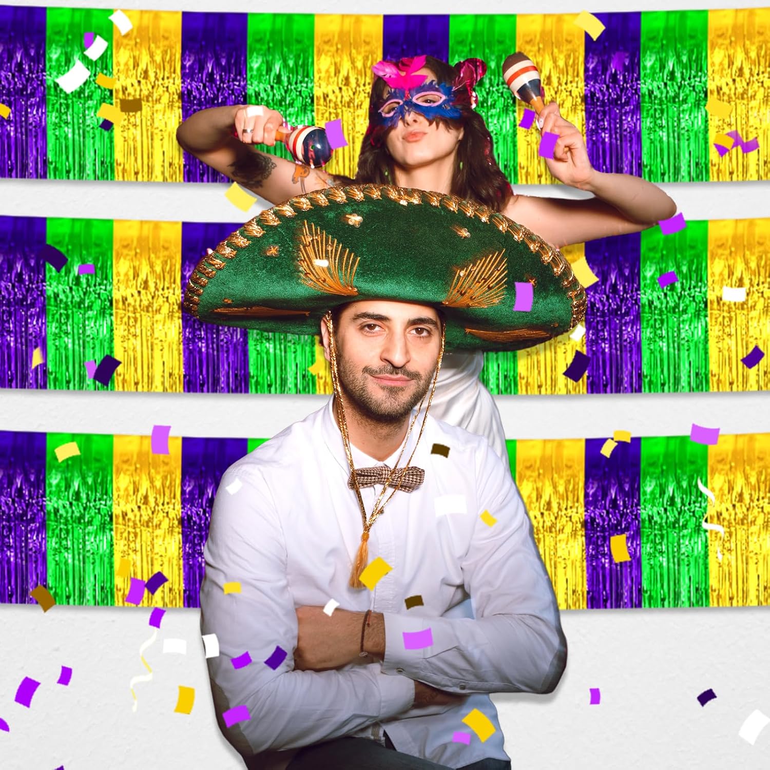 6 Pack 10 Feet Gold Green Purple Foil Fringe Garland Metallic Tinsel Streamers Banner Wall Hanging Curtain Backdrop for Parade Floats, Birthday, Graduate, Mother's Day, Wedding Party Decoration