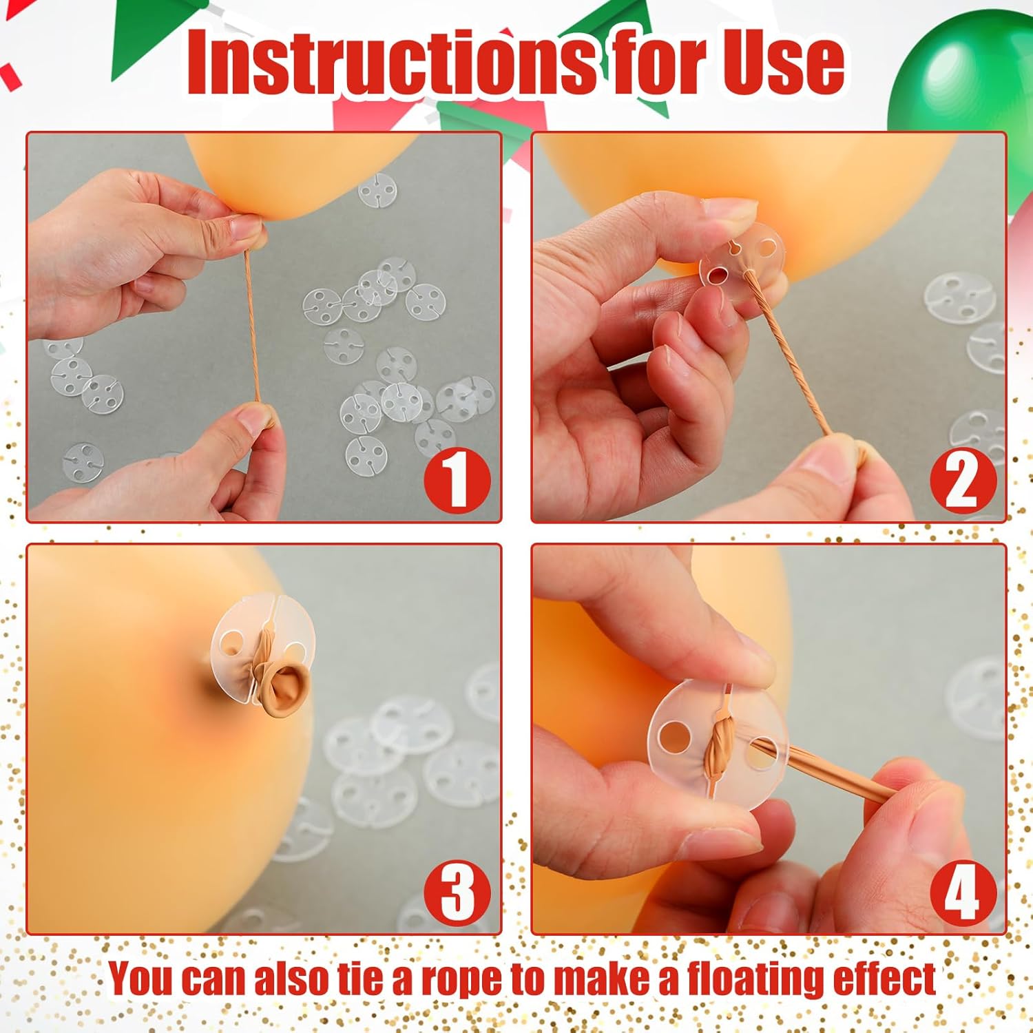 - Simple to Seal: the easy balloon tie tool is easy to operate, you need to wrap the balloon mouth around the clip to secure it in place, 1 balloon clip can only be applied for 1 latex balloon, and the small hole next to the clip can also be tied directly to the balloon string