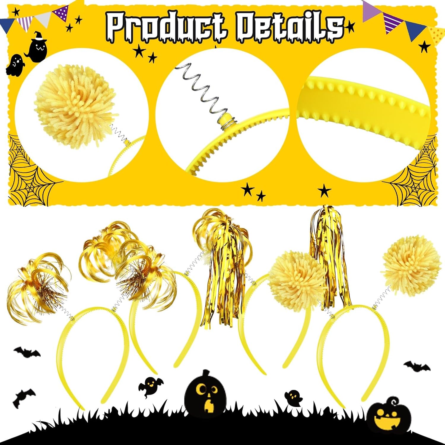Censen 12 Pcs Halloween Pom Pom Party Headbands Tinsel Ponytails Spirit Head Bopper Headwear for Christmas Birthday Holiday