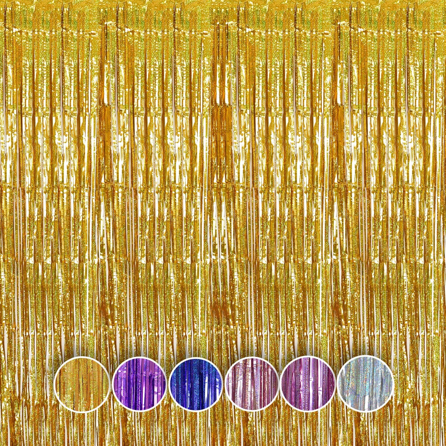 QRabbit 4 Pack Foil Fringe Curtains, Gold Metallic Tinsel Party Streamers Curtains, Backdrop Curtain for Birthday Graduation Engagement Wedding Bachelorette Baby Shower Party Decorations
