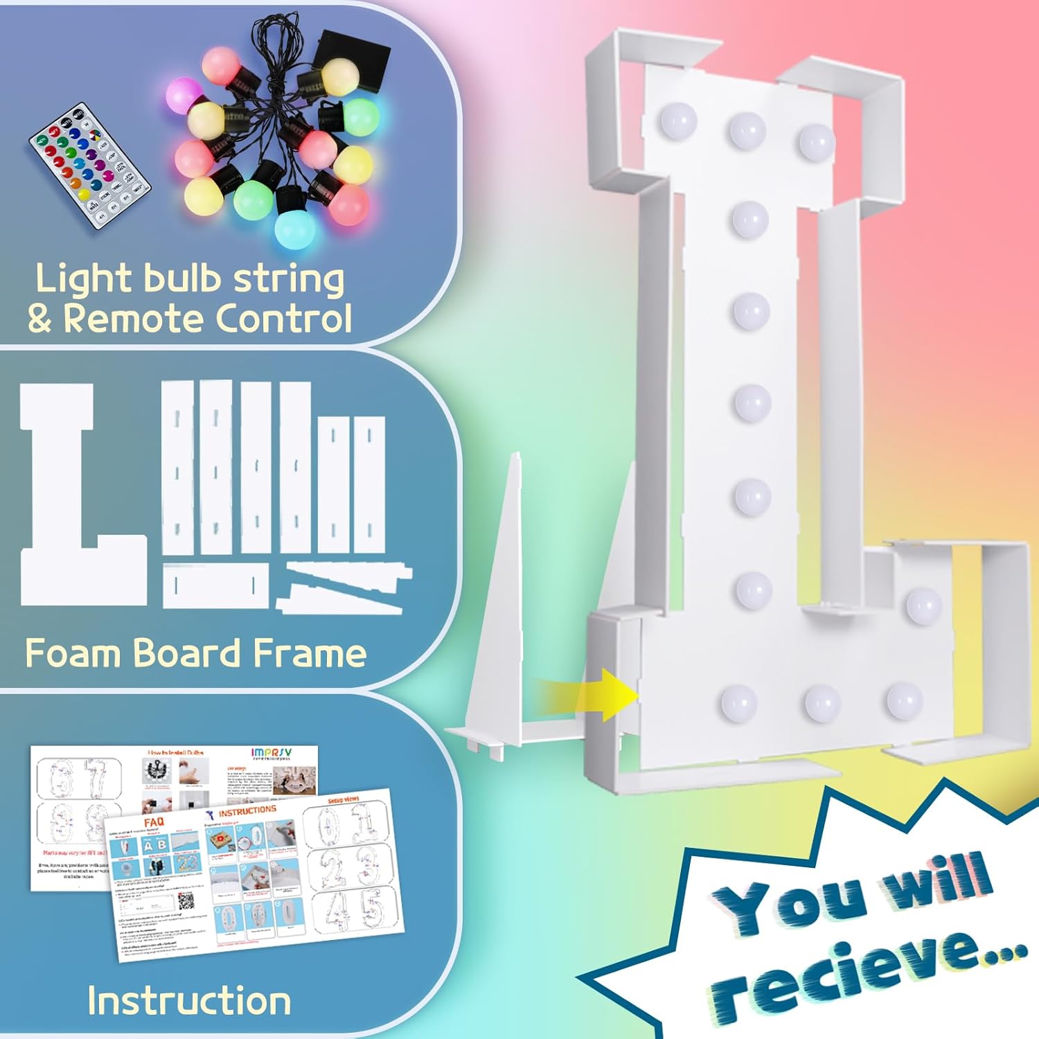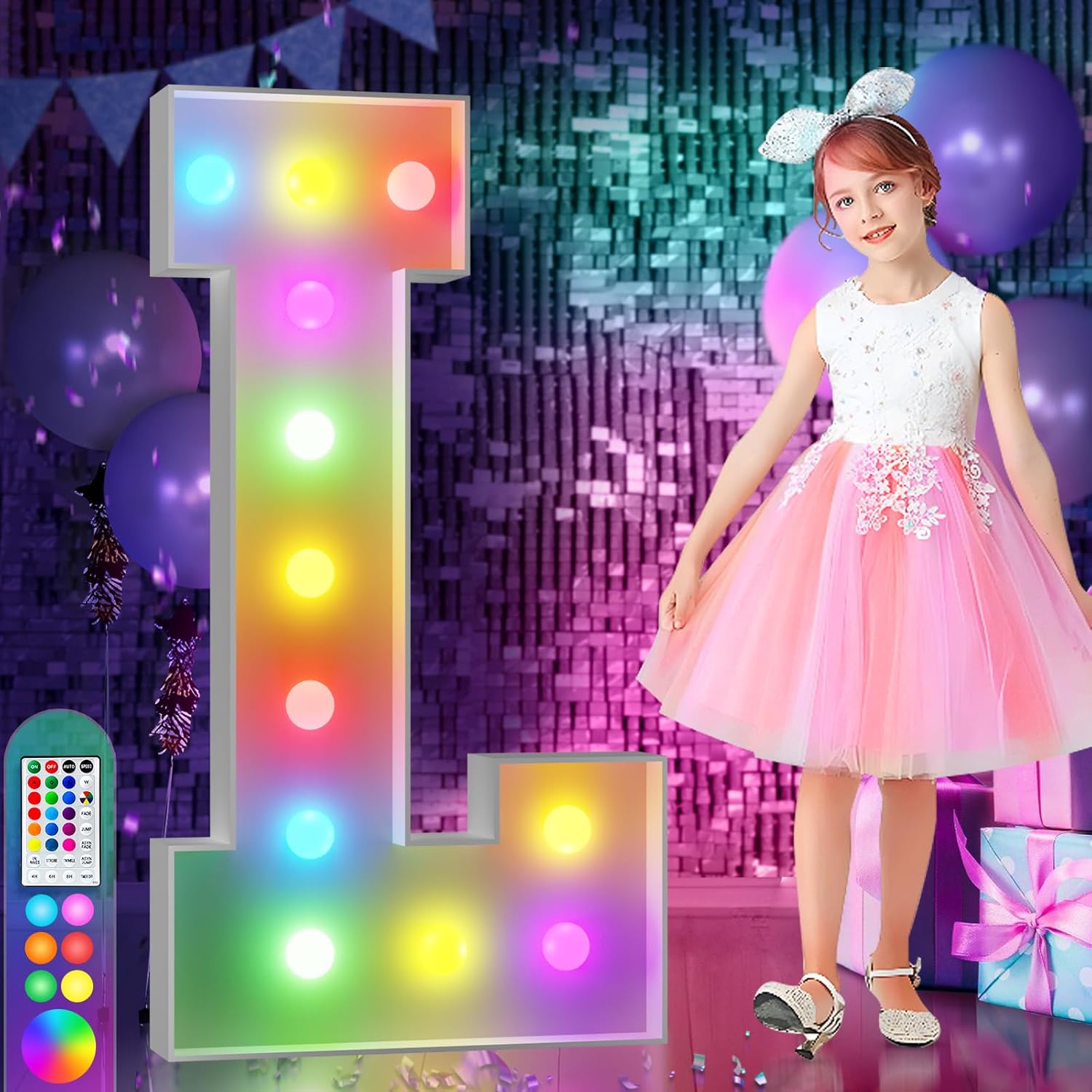 imprsv 4FT Colorful Marquee Light Up Letters L, 18 Colors Large Light up Letters Alphabet Sign with Remote, Large Marry Me Sign, Birthday Party Decorations Baby Shower Anniversary Wedding Decoration