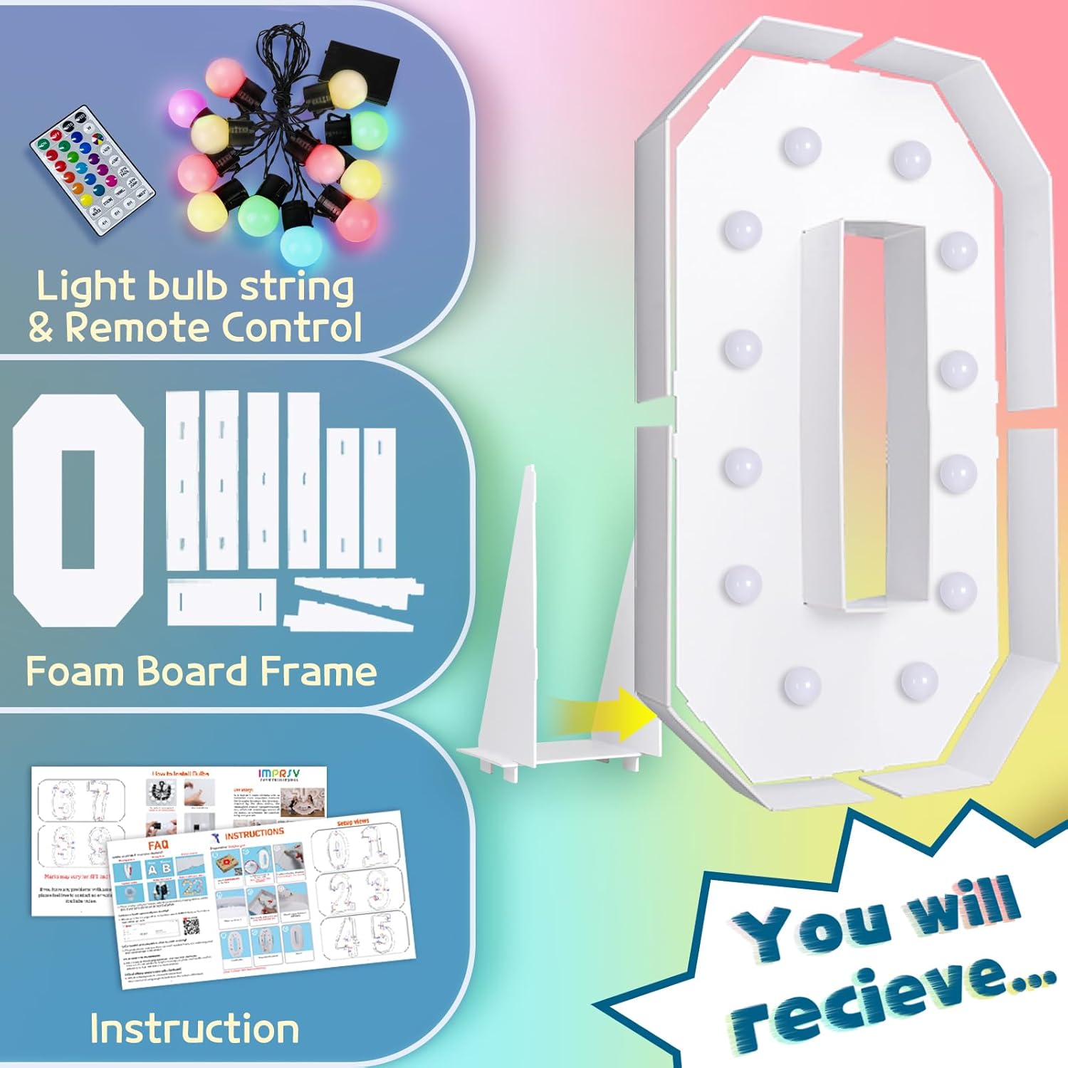 imprsv 4FT Colorful Marquee Light Up Letters O, 18 Colors Large Light up Letters Alphabet Sign with Remote, Big Marry Me Sign, Birthday Party Decorations Baby Shower Anniversary Wedding Decoration