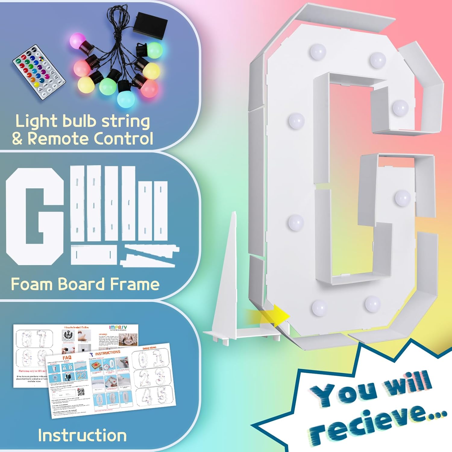 imprsv 3FT Colorful Marquee Light Up Letters G, 18 Colors Large Light up Letters Alphabet Sign with Remote, Big Marry Me Sign, Birthday Party Decorations Baby Shower Anniversary Wedding Decoration
