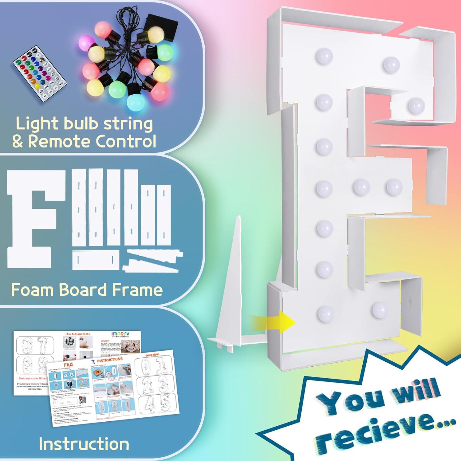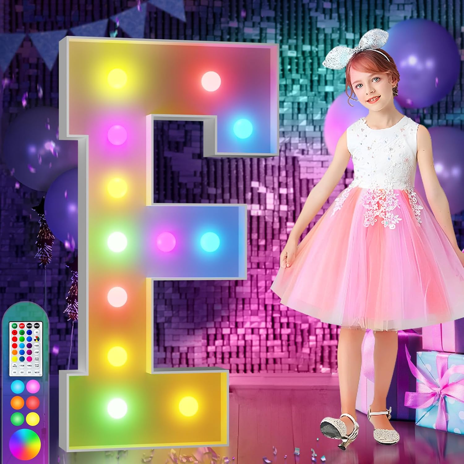 imprsv 4FT Colorful Marquee Light Up Letters F, 18 Colors Light Up Letters Alphabet Sign with Remote, One Letters First Birthday, Large Letters for Birthday Engagement Anniversary Wedding Party Decor