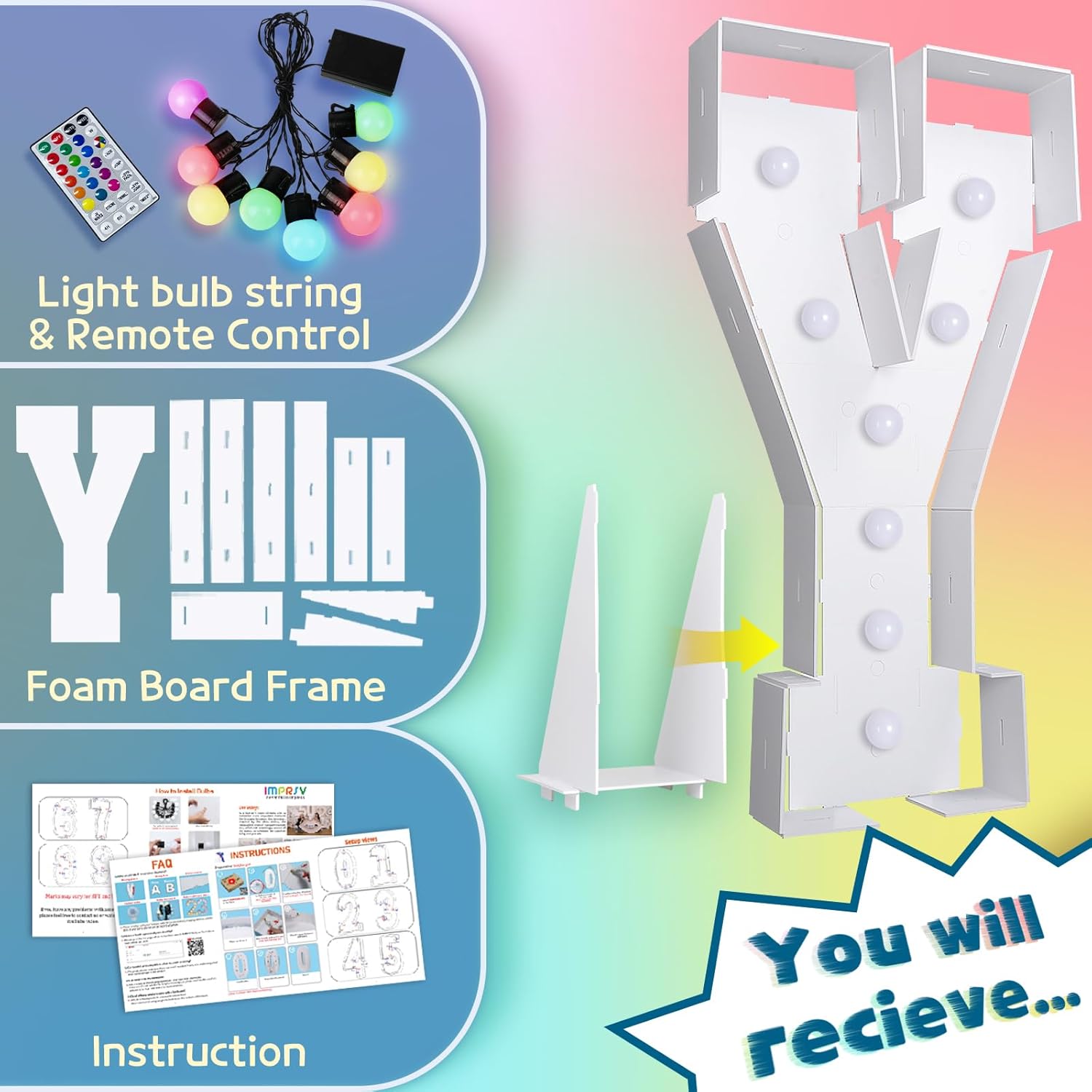 imprsv 3FT Colorful Marquee Light Up Letters Y, 18 Colors Large Light up Letters Alphabet Sign with Remote, Big Marry Me Sign, Birthday Party Decorations Baby Shower Anniversary Wedding Decoration