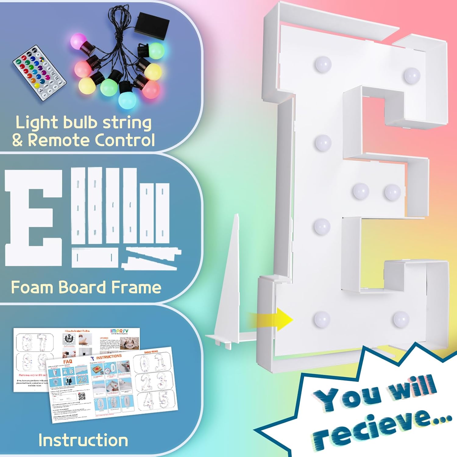 imprsv 3FT Colorful Marquee Light Up Letters E, 18 Colors Large Light up Letters Alphabet Sign with Remote, Big Marry Me Sign, Birthday Party Decorations Baby Shower Anniversary Wedding Decoration
