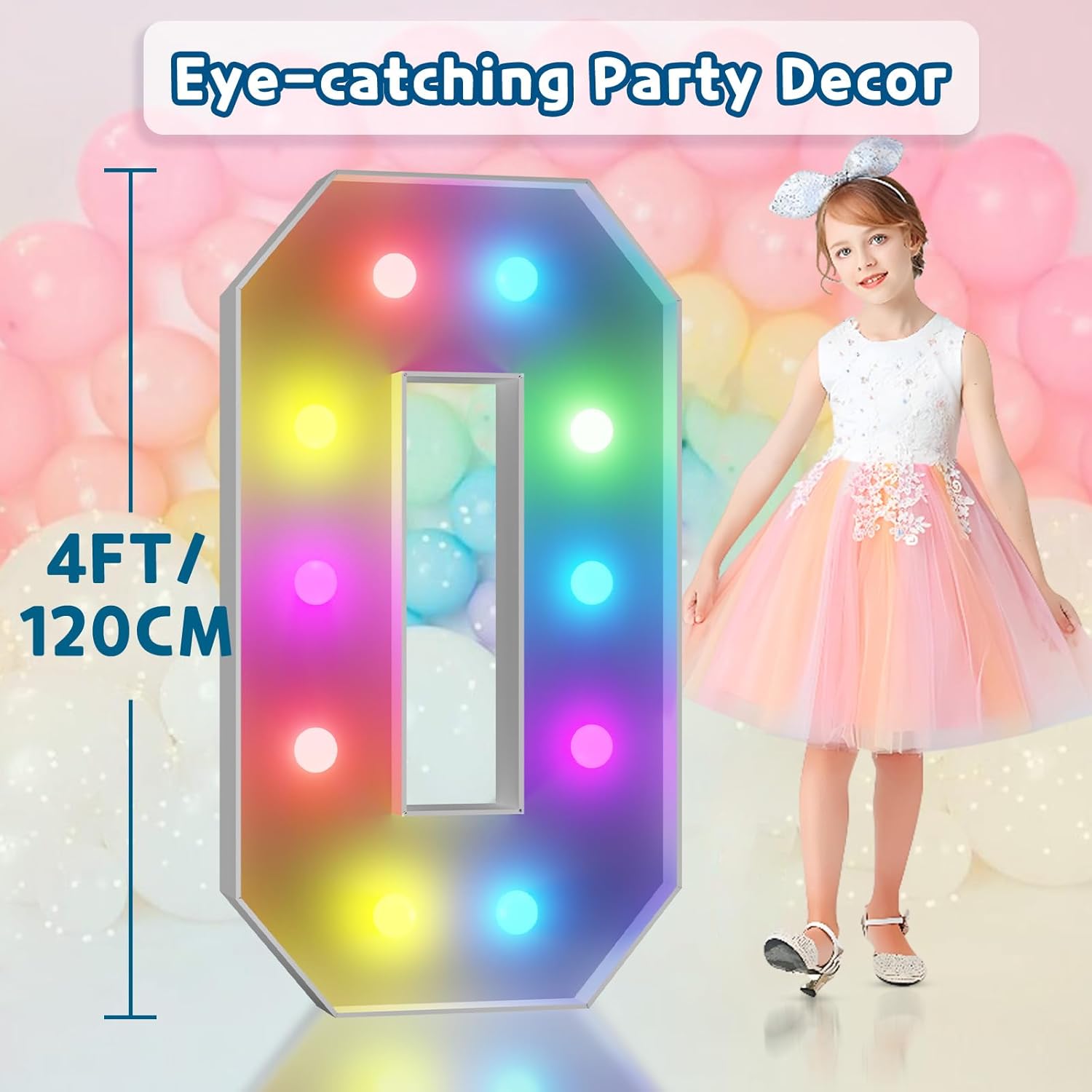 imprsv 4FT Colorful Marquee Numbers,18 Colors Number 0 with Remote, Light Up Numbers Sign for 50th Birthday Decorations Anniversary Party Decor, Pre-Cut Foam Board Kit, Mosaic Sign for Balloon