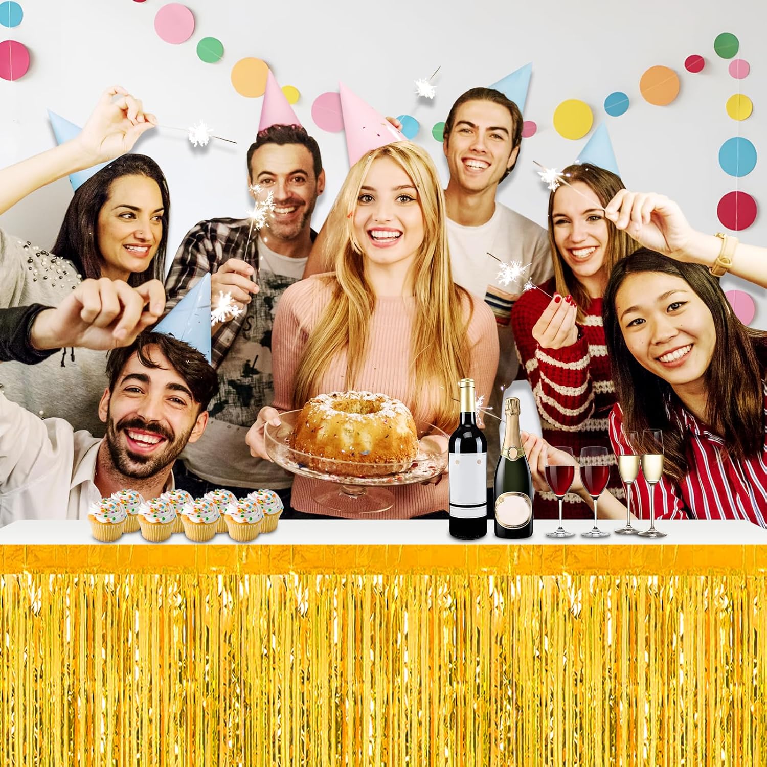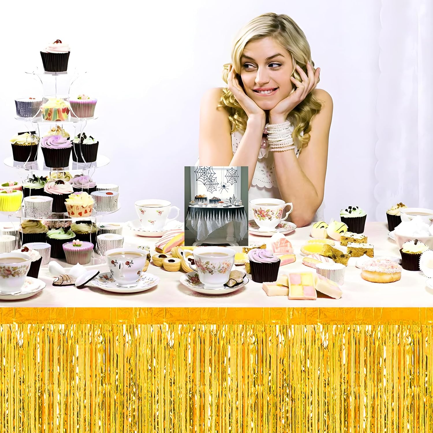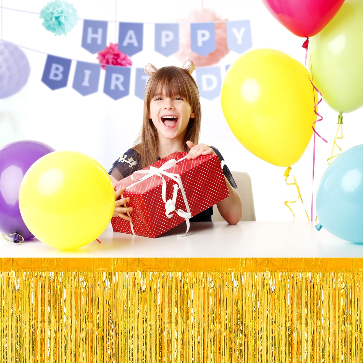 - Specifications and dimensions:3 Packs metallic foil tassel table skirt 29x108 inches, which is enough to decorate your party, provide you with excellent Convenient installation: the table skirt is equipped with self-adhesive tape. Just tear off the tape and paste it. The installation is convenient and quick. It can be pasted on the edge of your round table and square table. It can be easily cut into any siz.