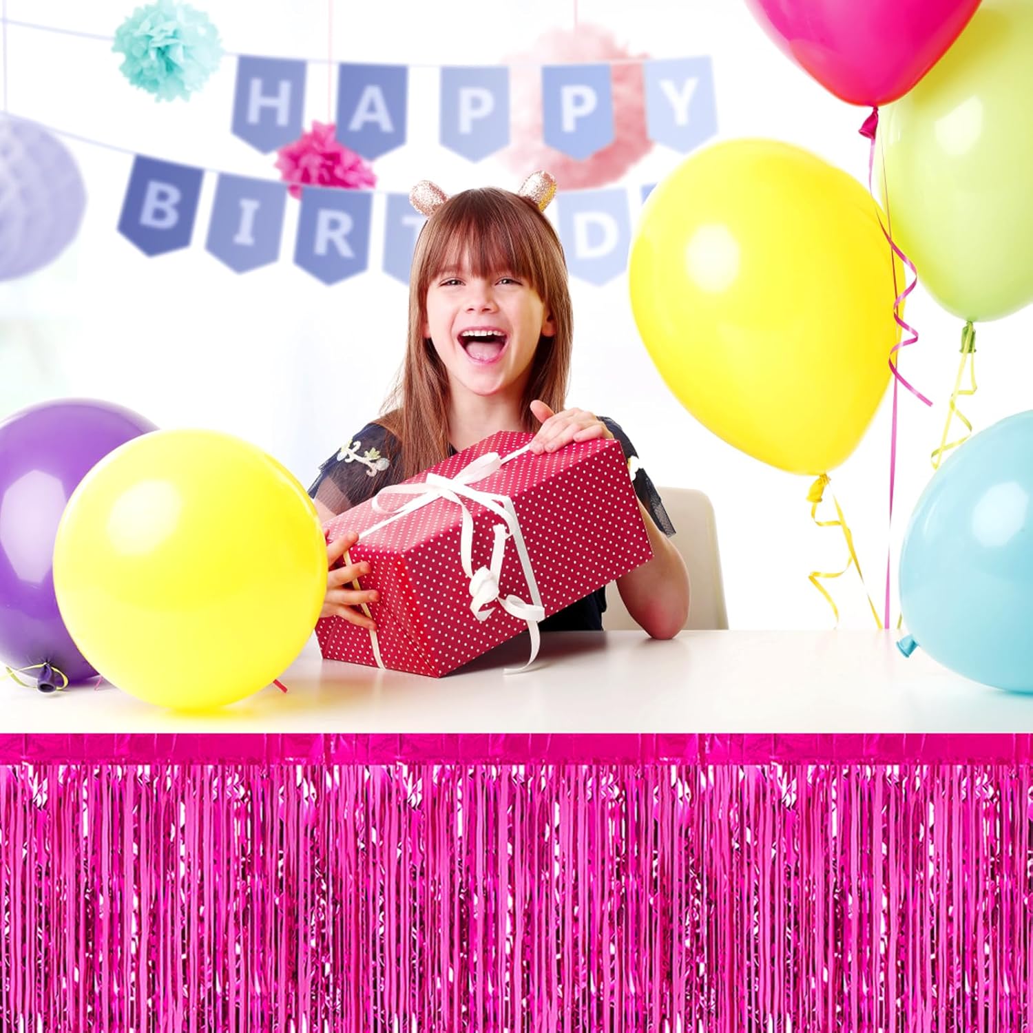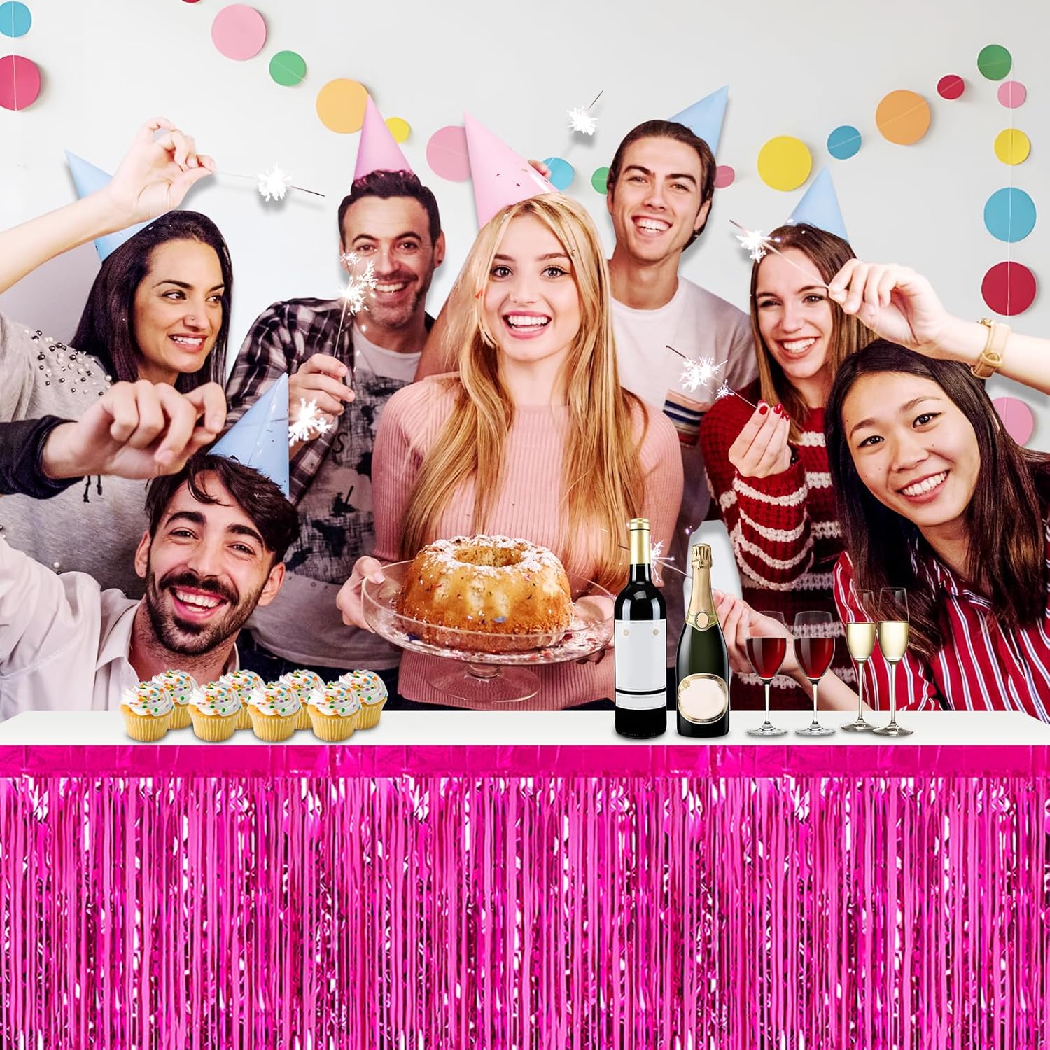 3 Pack 29x108 Inch Rose Red Foil Fringe Table Skirts Metallic Banner for Tinsel Streamer Garland Backdrop for Parade Floats Wedding Thanksgiving Birthday Christmas Halloween Party Decoration
