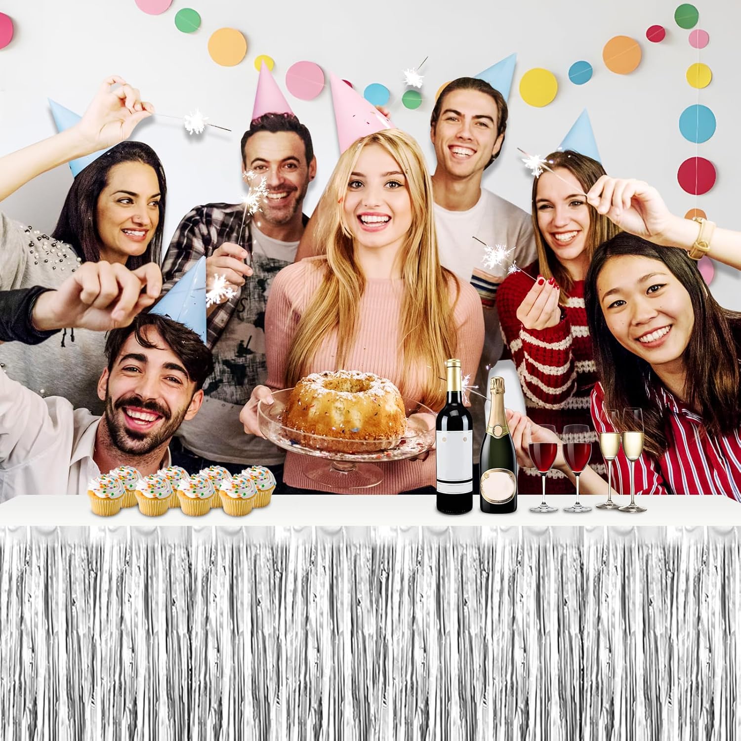 - Specifications and dimensions:3 Packs metallic foil tassel table skirt 29x108 inches, which is enough to decorate your party, provide you with excellent Convenient installation: the table skirt is equipped with self-adhesive tape. Just tear off the tape and paste it. The installation is convenient and quick. It can be pasted on the edge of your round table and square table. It can be easily cut into any siz.