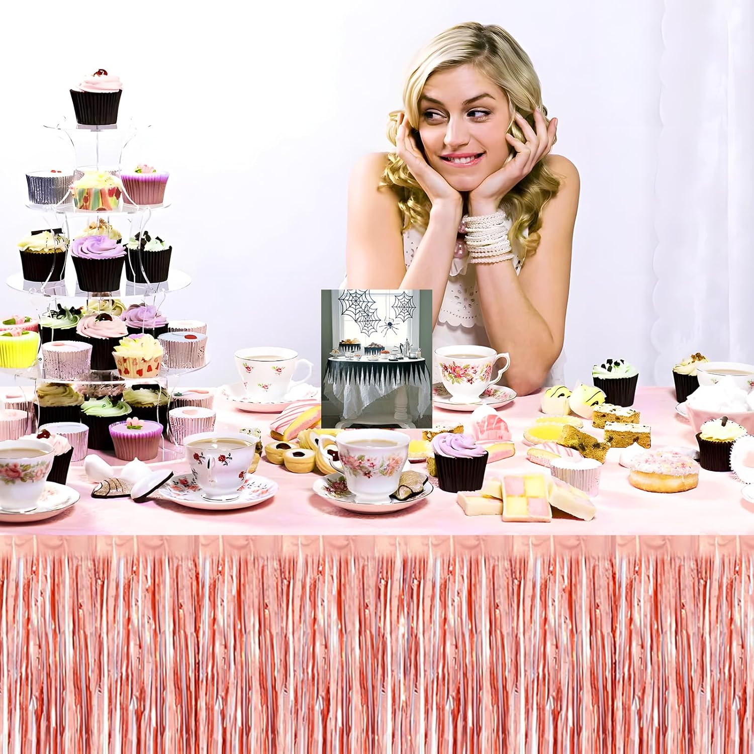 3 Pack 29x108 Inch Rose Gold Foil Fringe Table Skirts Metallic Banner for Tinsel Streamer Garland Backdrop for Parade Floats Wedding Thanksgiving Birthday Christmas Halloween Party Decoration