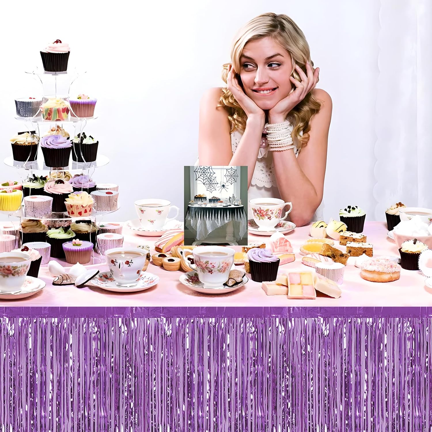 3 Pack 29x108 Inch Light Purple Foil Fringe Table Skirts Metallic Banner for Tinsel Streamer Garland Backdrop for Parade Floats Wedding Thanksgiving Birthday Christmas Halloween Party Decoration
