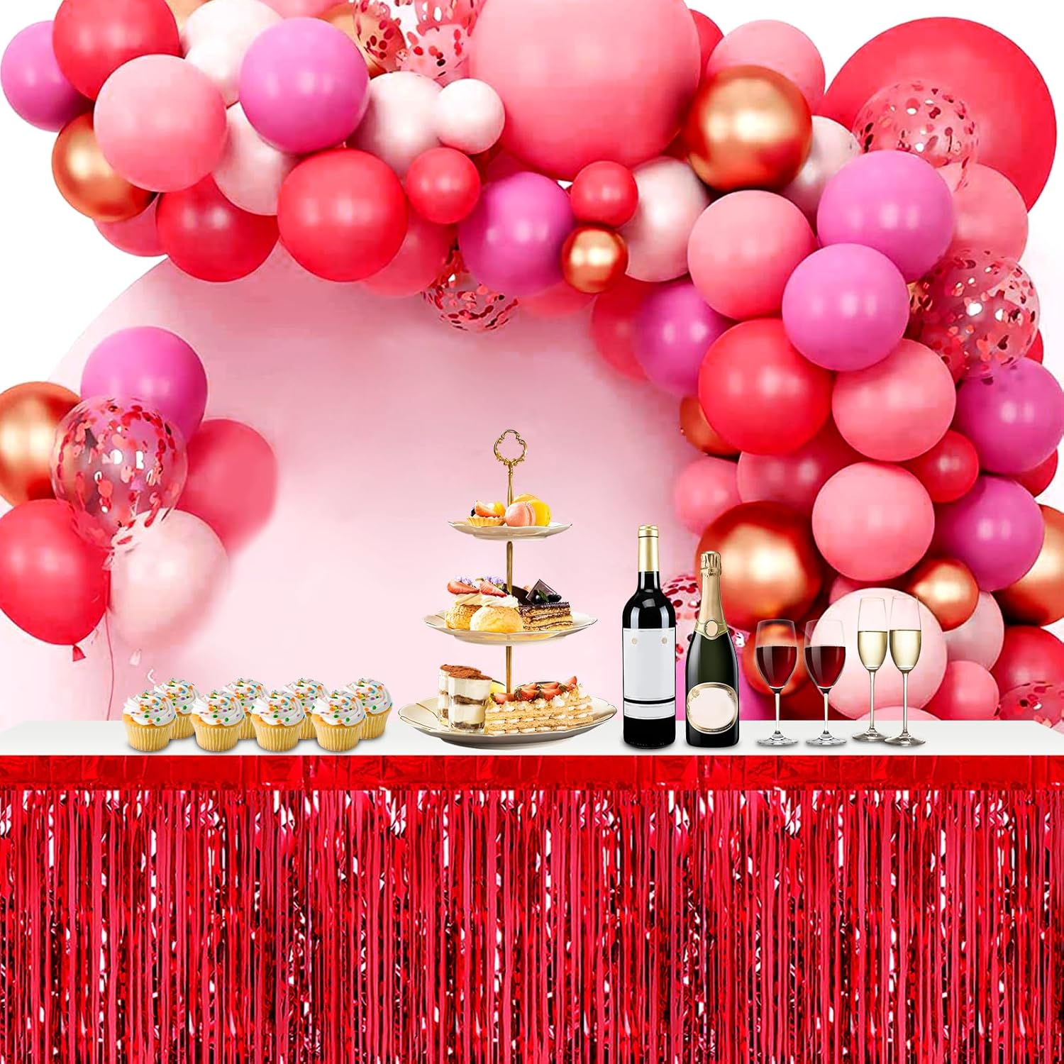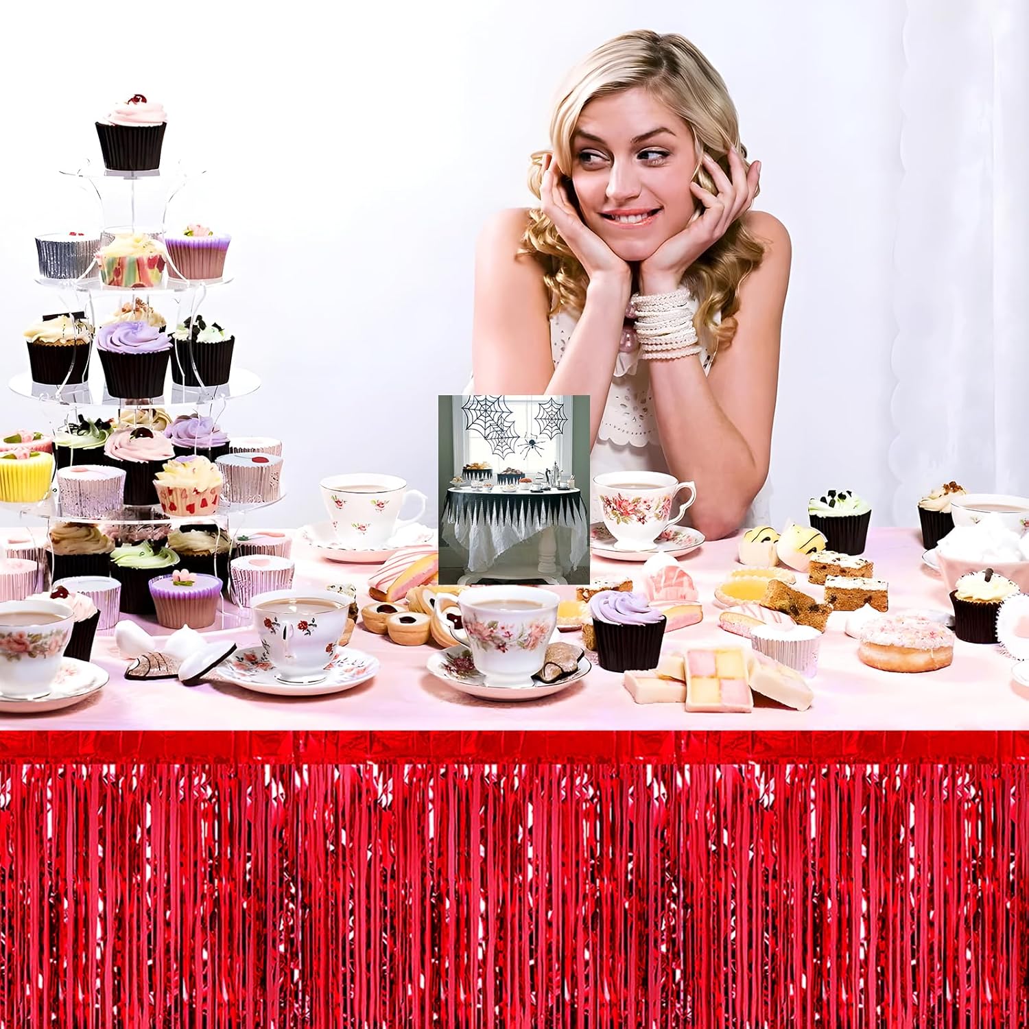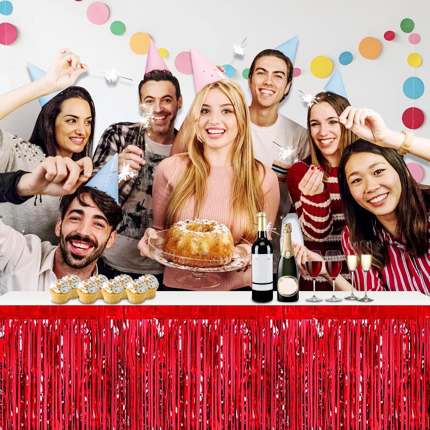 3 Pack 29x108 Inch Red Foil Fringe Table Skirts Metallic Banner for Tinsel Streamer Garland Backdrop for Parade Floats Wedding Thanksgiving Birthday Christmas Halloween Party Decoration