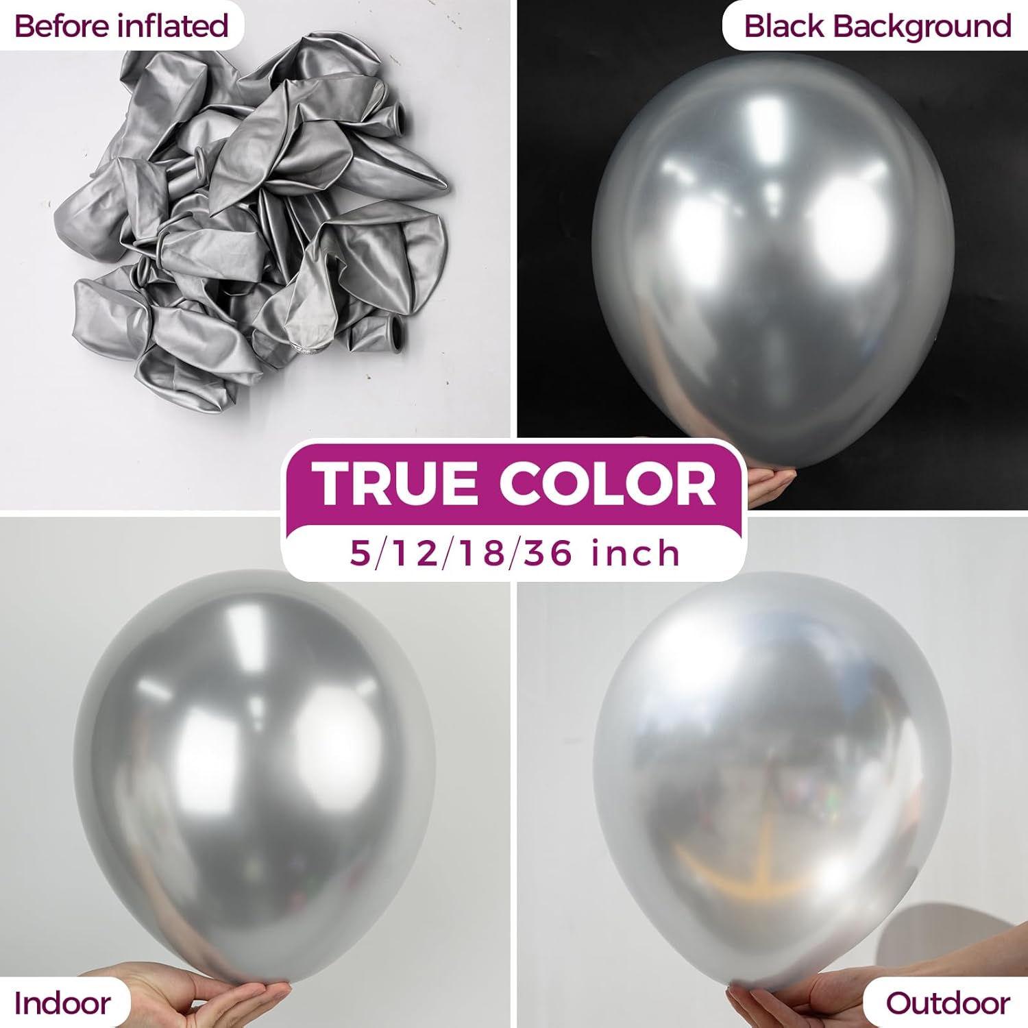 - ăSet Includesă- Each sets contains 8pcs 36 inch large metallic silver balloons and 1pcs silver ribbon (33 feet total).The right amount quantity and most suitable color for each party decoration.