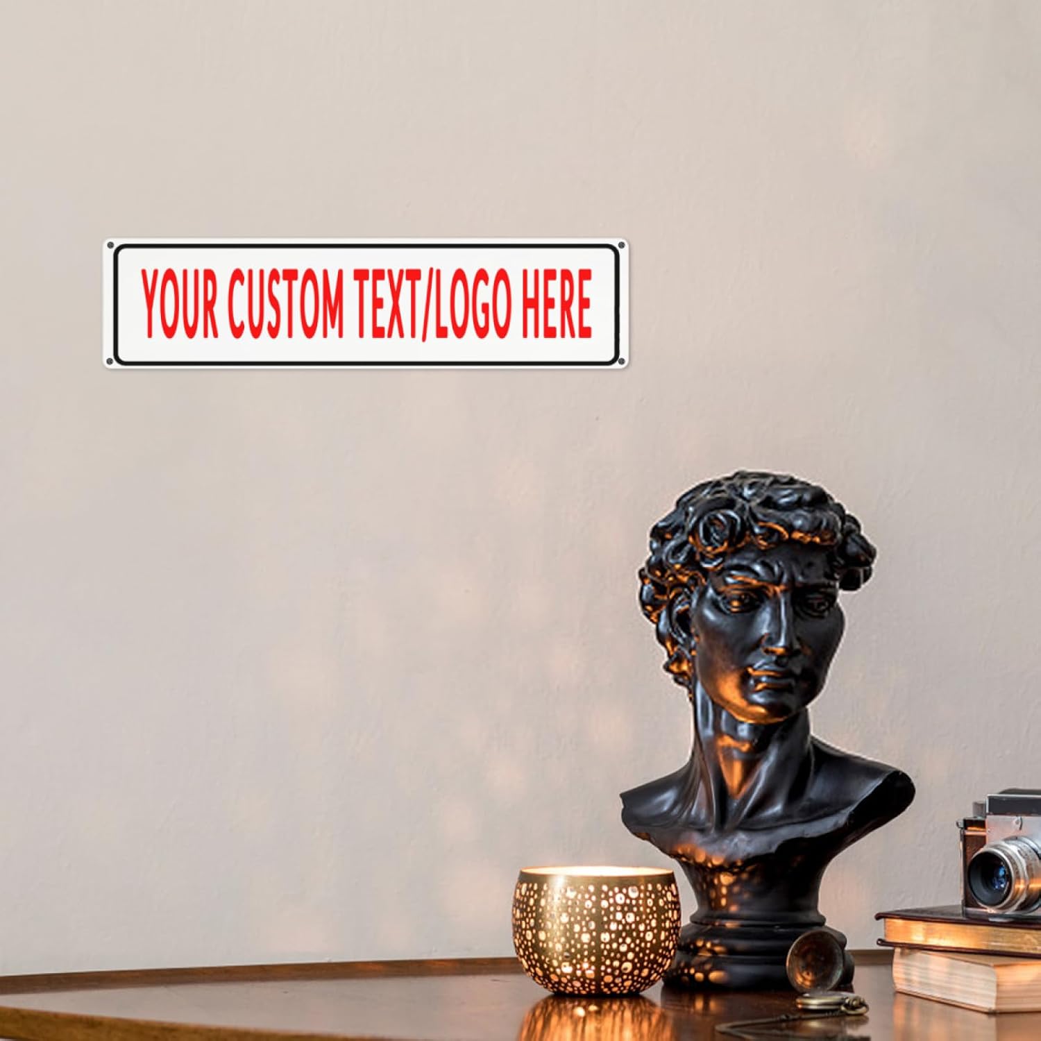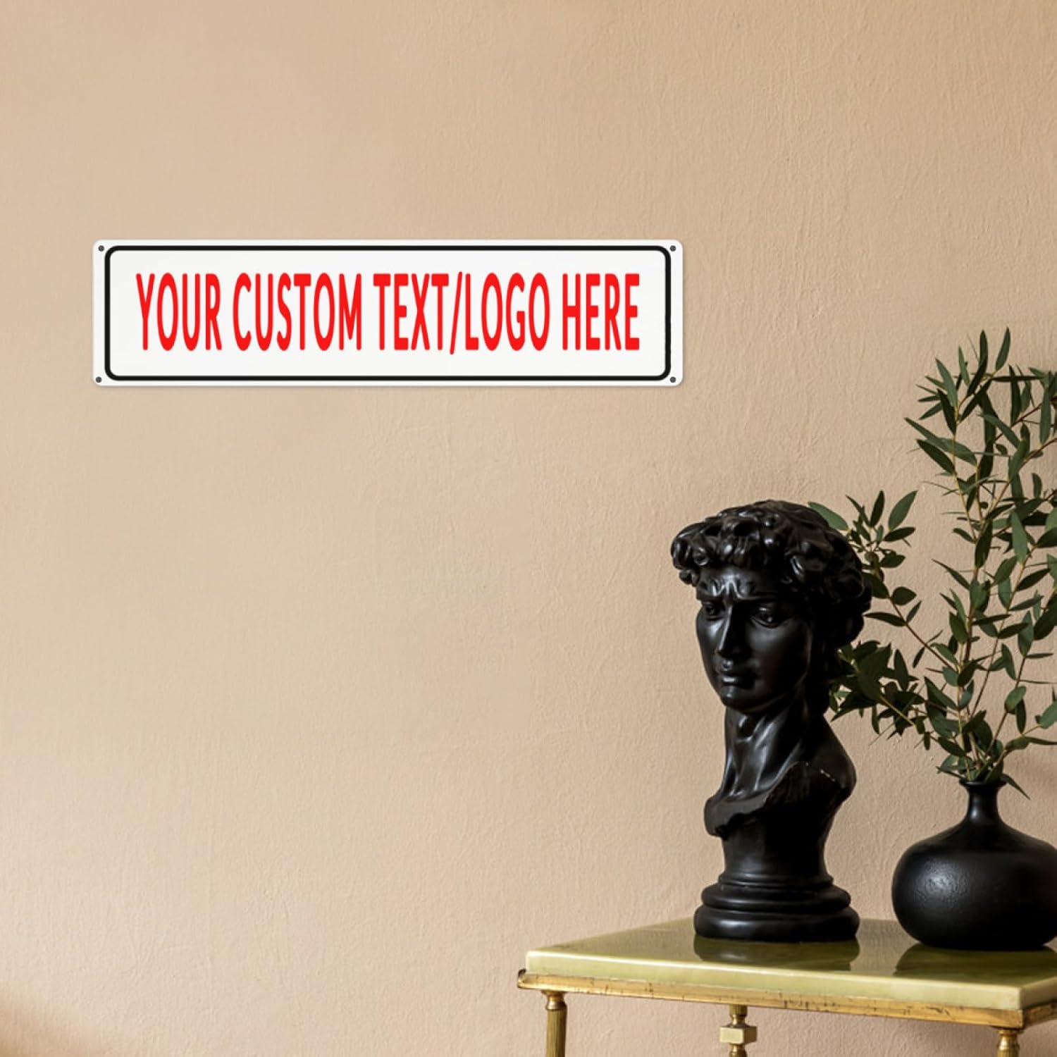 - CUSTOM YOUR OWN PERSONALIZED METAL SIGNS - By Upload Your Image Or Text Or Logo! Please Start By Clicking "Customize Now" Button And Click "Browse" Button To Upload Picture,Also Your Can Select The Color Background, Type Your Text You Can Choose The Typeface And Text Color.