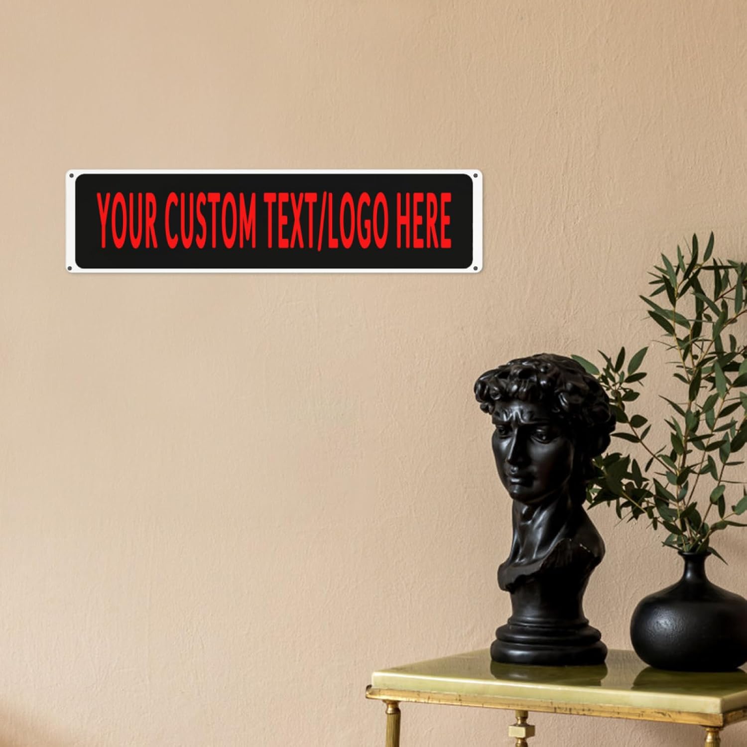- CUSTOM YOUR OWN PERSONALIZED METAL SIGNS - By Upload Your Image Or Text Or Logo! Please Start By Clicking "Customize Now" Button And Click "Browse" Button To Upload Picture,Also Your Can Select The Color Background, Type Your Text You Can Choose The Typeface And Text Color.