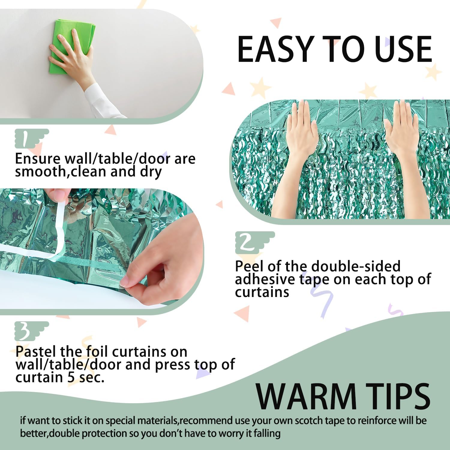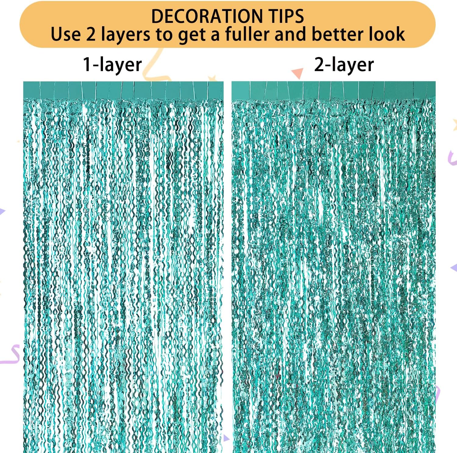 - Package Included: 3 packs teal fringe backdrop, the size of 3.3*6.6ft,It's long enough to fit any occasion,Please do not stick the foil curtain on uneven or stained walls to prevent it from falling off!!!