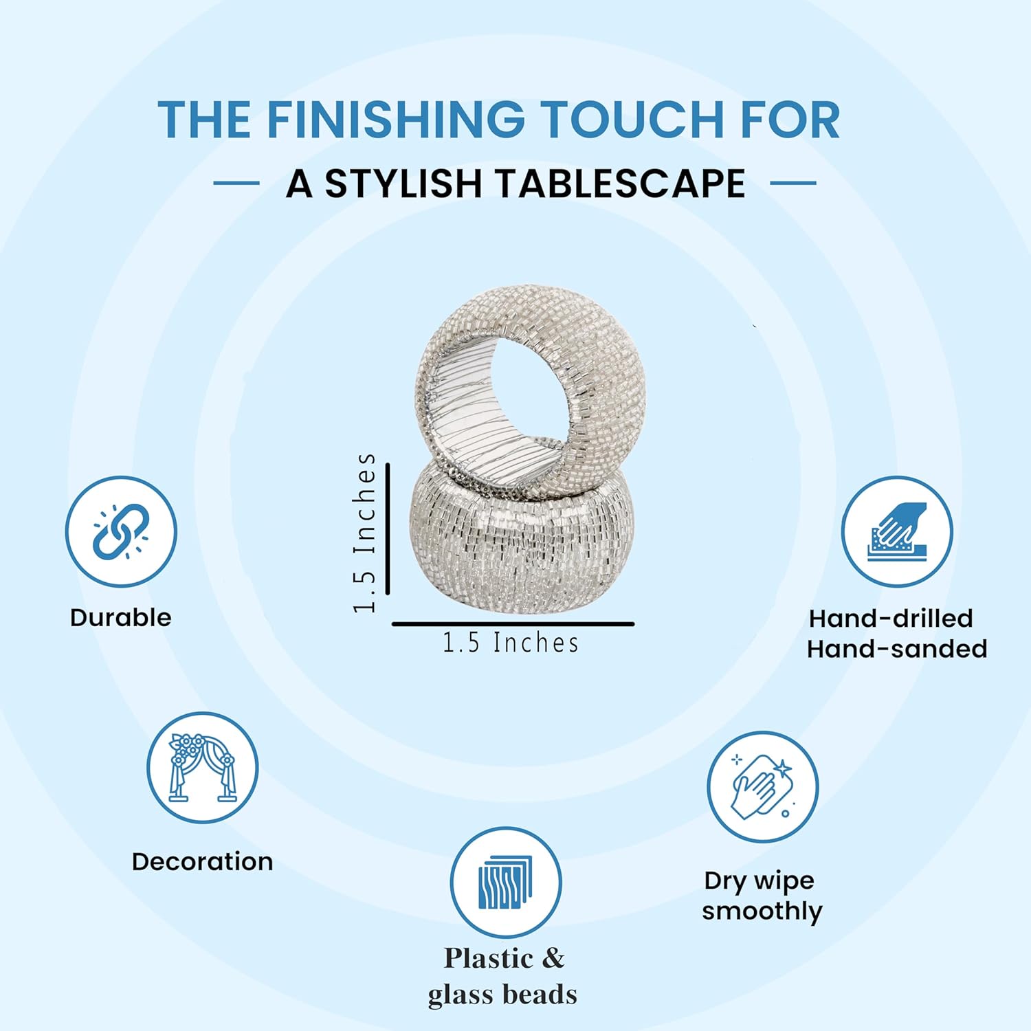 12 Pcs Beaded Napkin Rings - Rhinestone Napkin Buckles Glossy Napkin Bling Round Holders for Easter Holiday Wedding Banquet Home Party Dining Table Decoration (Silver) - CLEENTABLE