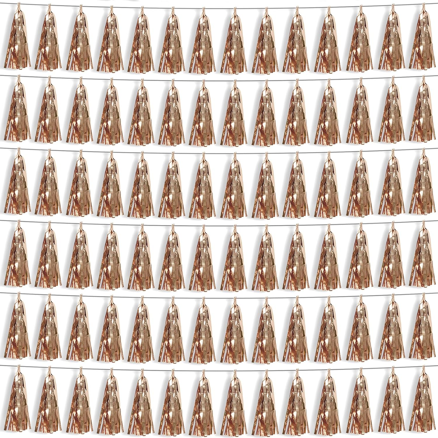 - 【Reusable Paper Material】: high-quality metallic foil tassel garlands, with the virtue of nice craftsmanship and lightweight, they are reusable and safe, and not easy to fade; They come with white ribbon for hanging, and garland tassels hang perpendicular to the string, and are adjustable to provide you with the option of spreading the tassels out or piecing them closer together.