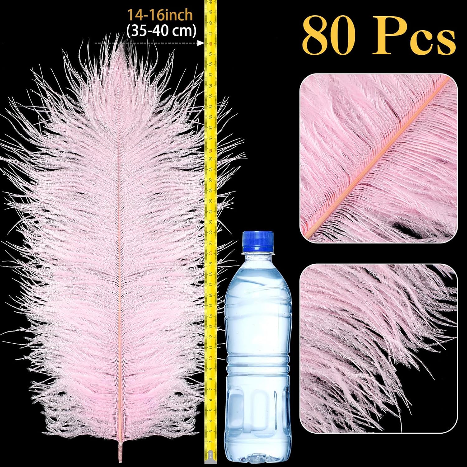 - Meet Using Needs: you will receive 80 pieces of ostrich feathers bulk in light pink color about 14-16 inches/ 35-40 cm, sufficient quantity and large size can meet your decorating and crafting needs in daily life