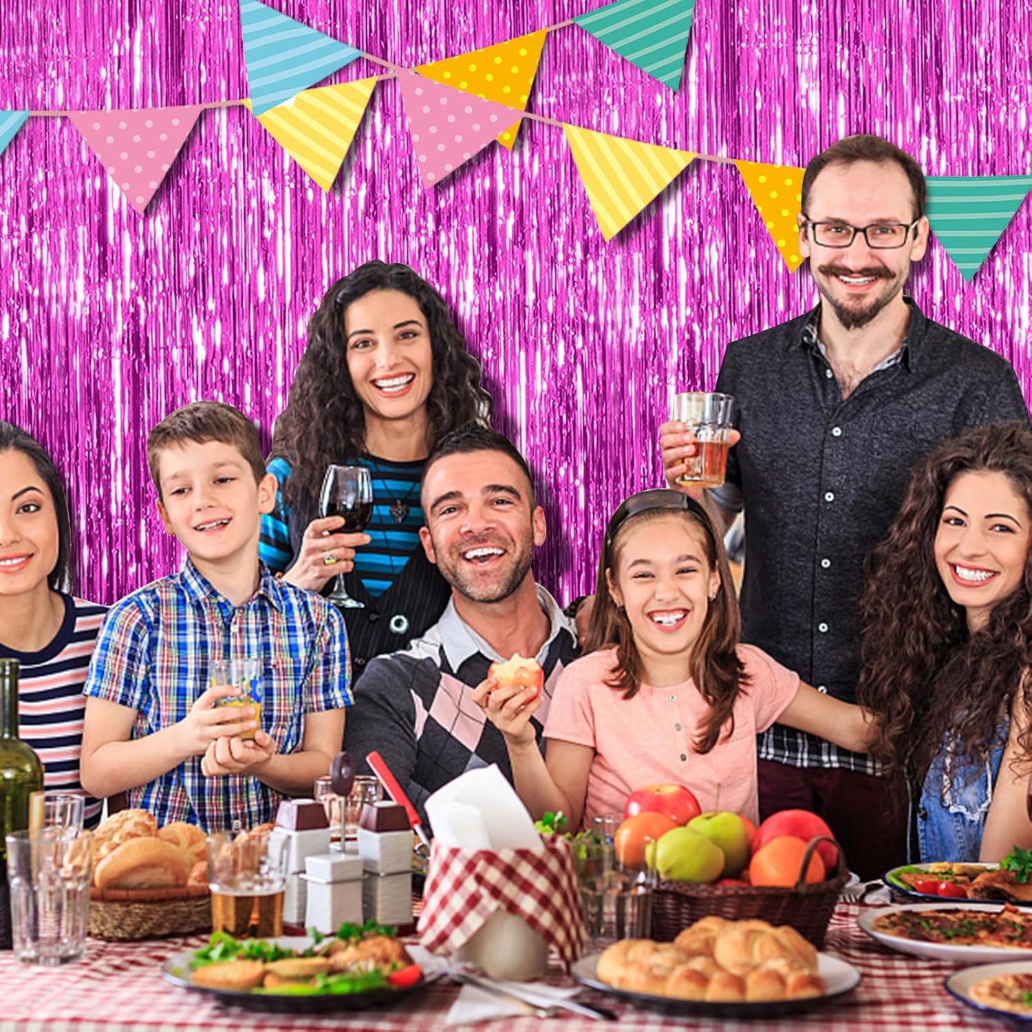 2 Pack Hot Pink Party Backdrop Birthday Decorations Tinsel Curtain Party Streamers Foil Fringe Christmas Bachelorette Graduation Fiesta Party Decorations Hot Pink Photo Booth Backdrop