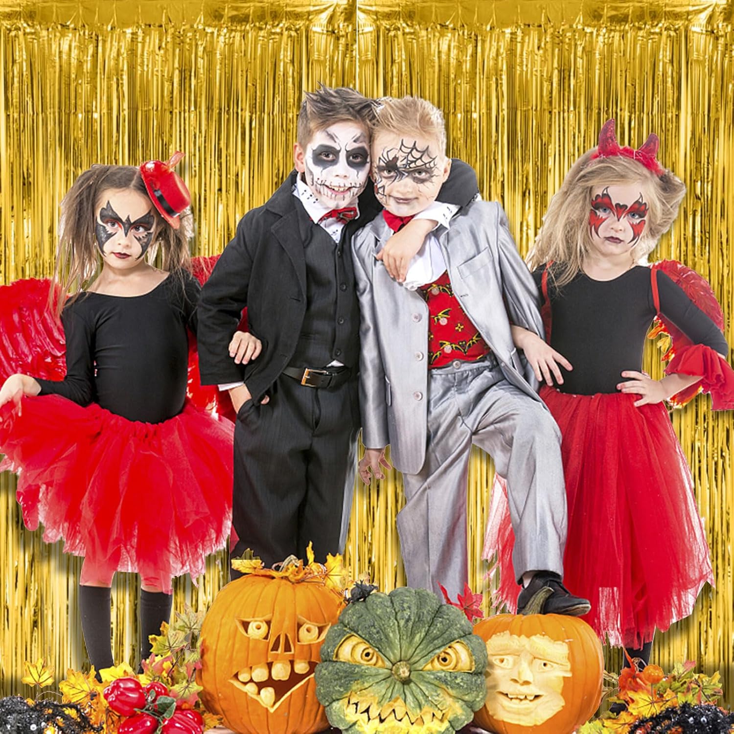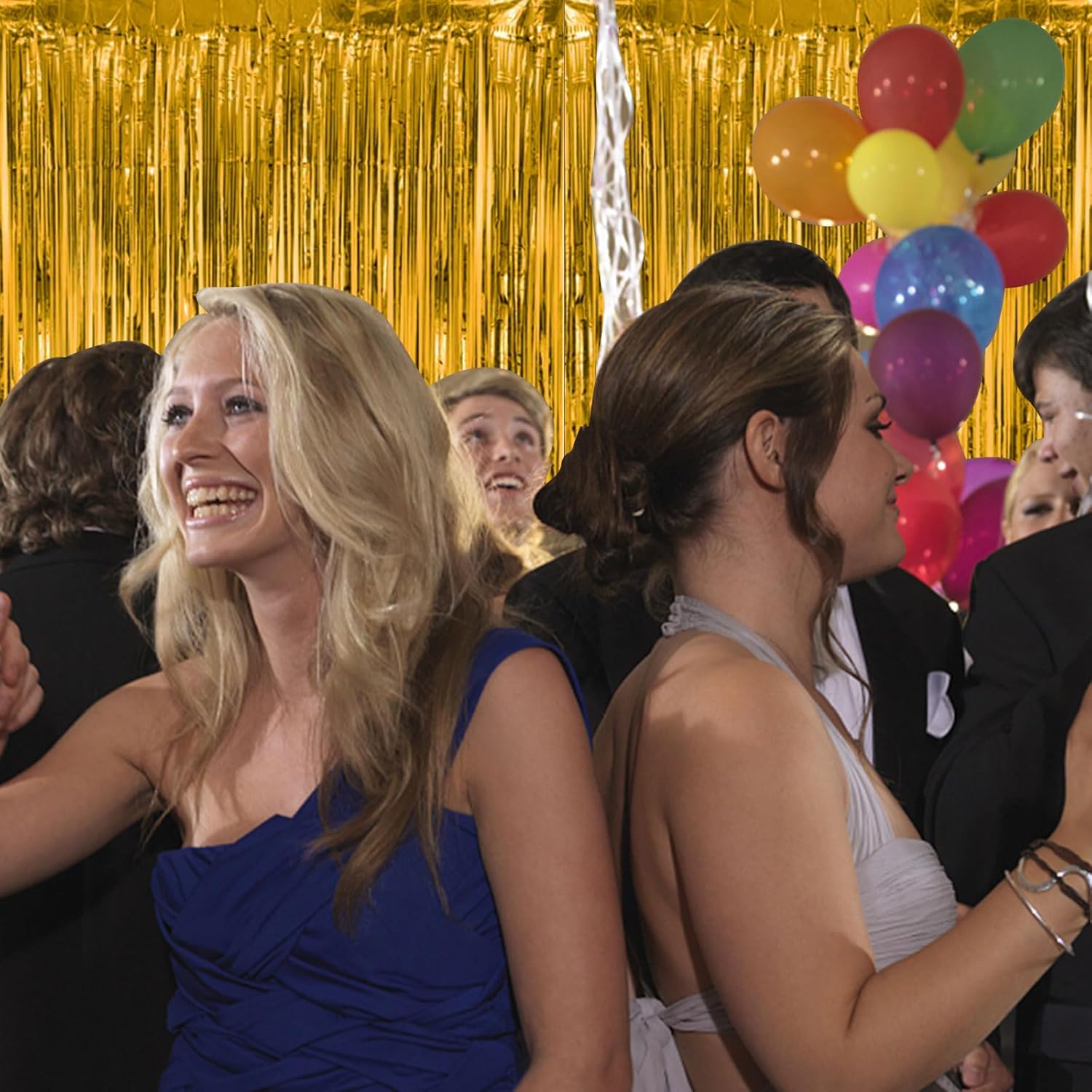 2 Pack Gold Fringe Curtain Backdrop Tinsel Streamers Birthday Party Decorations Christmas Photo Booth Backdrop New Year Halloween Graduation Baby Shower Theme Party Decorations