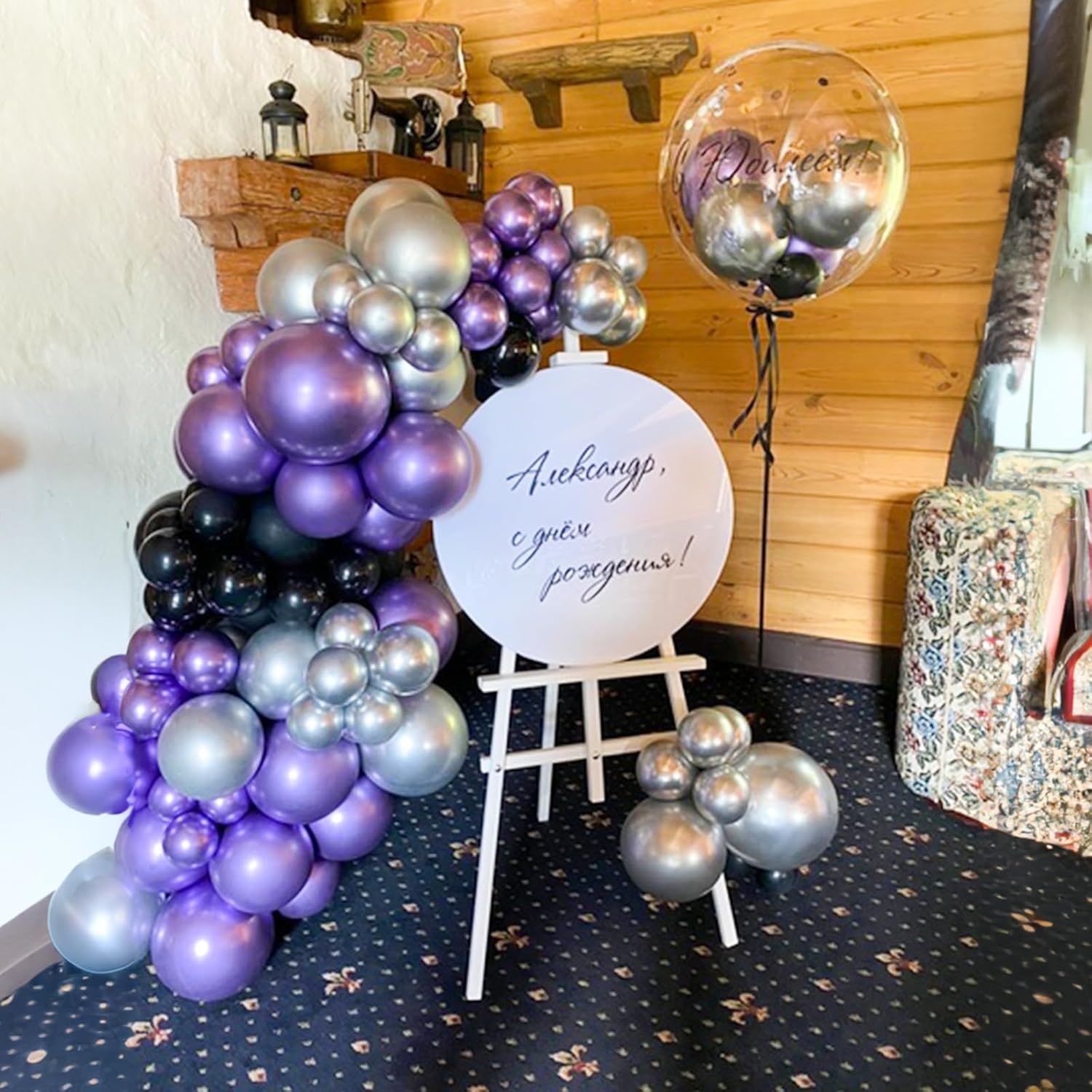 - 💜 🖤Black Purple Silver Balloons: 60 balloons and 2 ribbons. All our party balloons are shipped in vacuum packaging to prevent them from being oxidized during transportation.